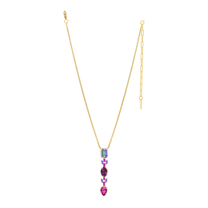 Make a statement with this Vanny Necklace! Show off your personality with its antique gold plated brass base metal, high quality crystals and hand painted enamel add an extra touch of glam. 17" in length, with 2.25" drop and 4" extension. Designed and made in Canada.