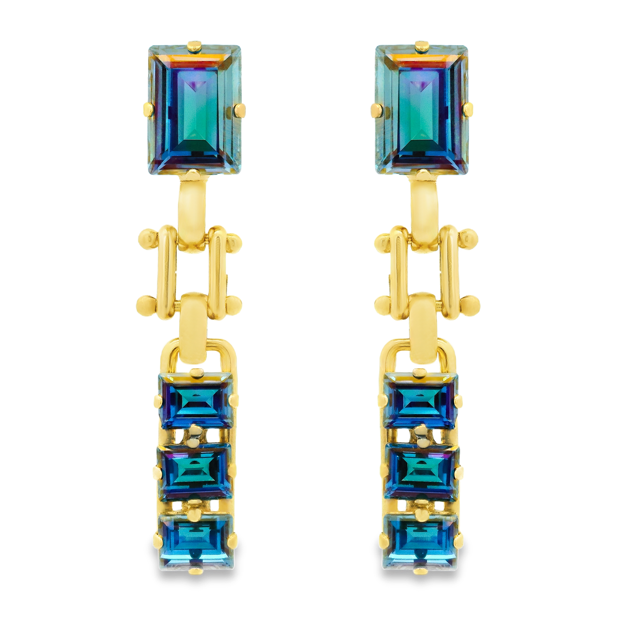 Add a sparkle to your night-sky glamour with these luminous Arisha Earrings in Ice Blue Lemon! Crafted with quality brass , and plated in a stunning antique gold, these earrings boast high-quality crystals with a look that will take you from dusk 'til dawn. Plus, with a 2.25" length and surgical steel posts, these star studs are sure to shine on forever! 🌟
