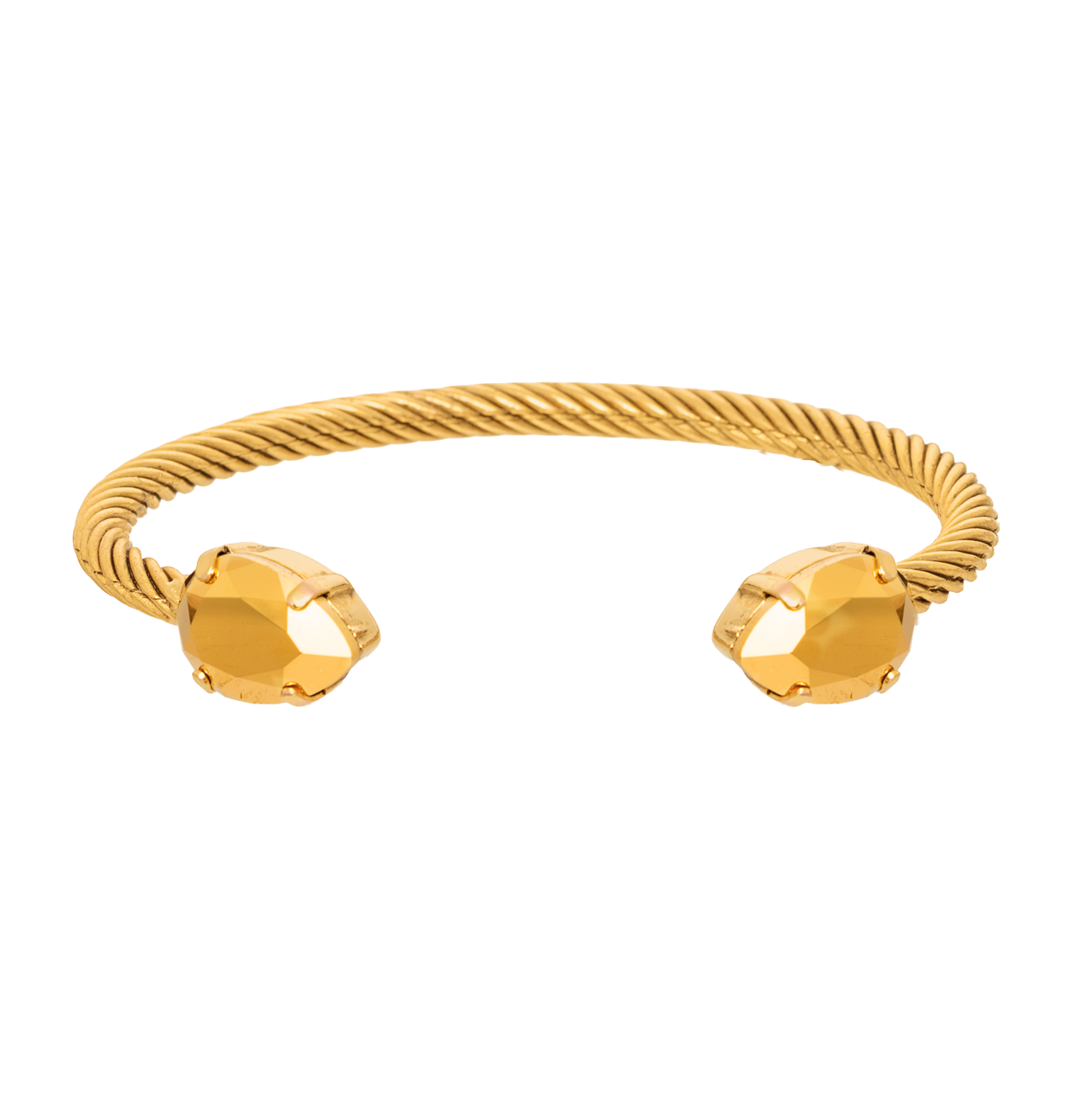 Add a touch of antique charm and sparkle with this Charlotte Cuff in Pear in Aurum. Handcrafted from high-quality antique gold plated brass and pewter base metal, these cuffs feature malleable design for a perfect fit. With high-quality crystals, these cuffs are sure to bring just the right amount of glitz to any outfit.