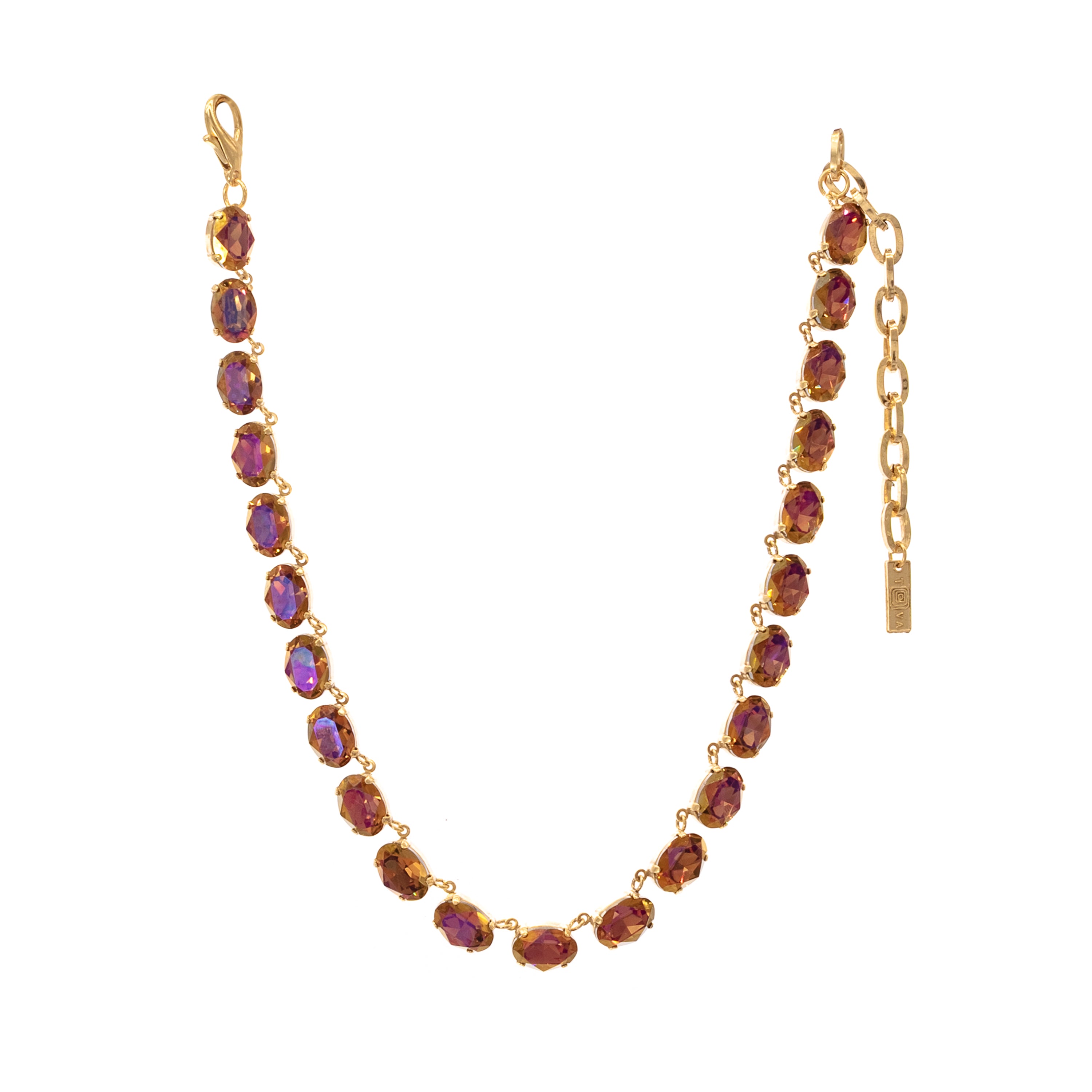 Make a sparkly statement with Danica Necklace in Chocolate! Perfectly crafted with an antique gold plated brass base and high-quality crystals, this shimmering gem is sure to add a hint of sass and flair to your look. 14" in length. It even has a convenient 4-inch extension for comfort. Show off your style with a little extra charm – the Danica Necklace is made with love in Canada!