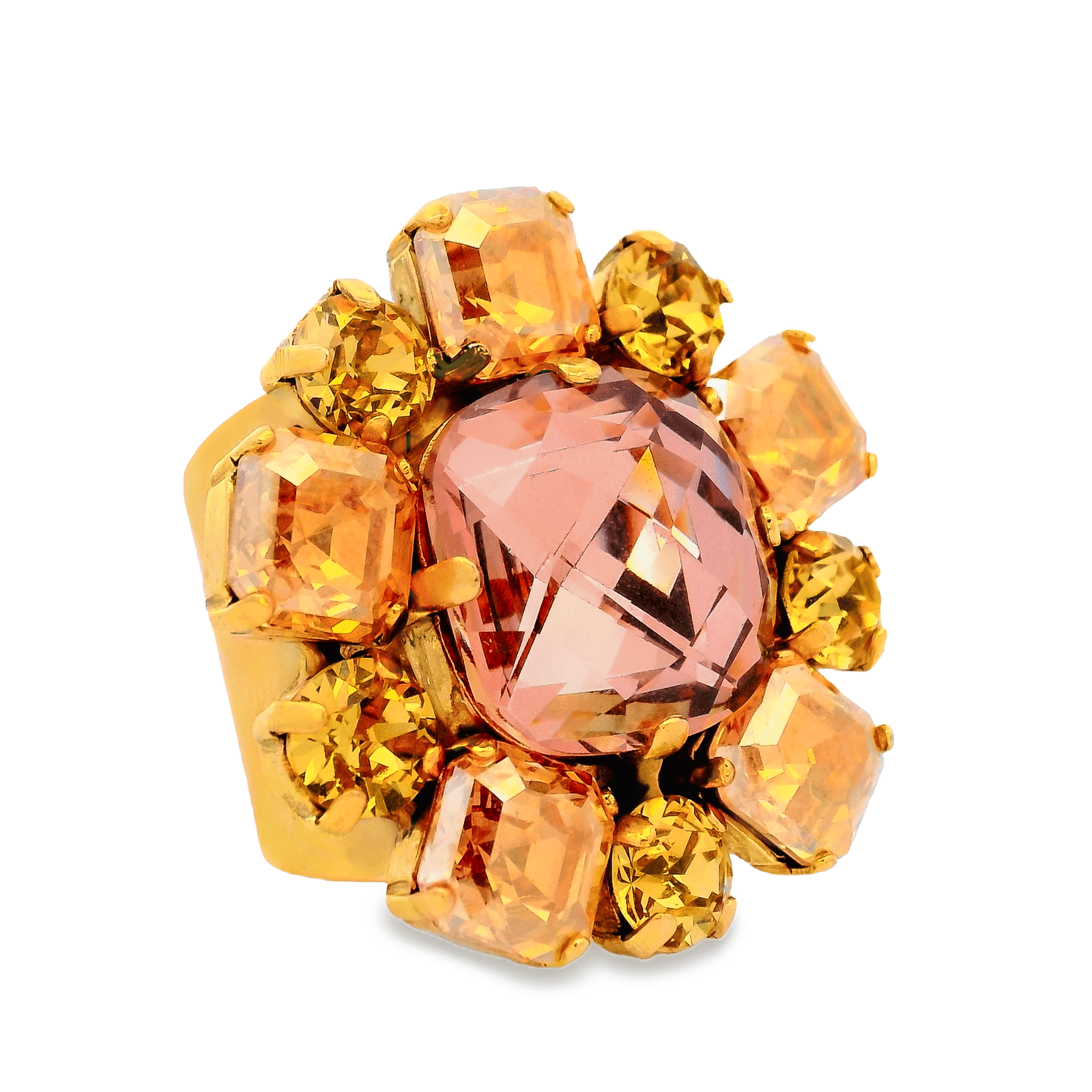 The Jadia Ring in Candy Glam Blush is a unique and stylish accessory for any outfit. Made in Canada, this antique gold plated ring features high quality crystals that add a touch of sparkle and elegance. Its adjustable fit ensures comfort and versatility. Upgrade your look with the Jadia Ring!