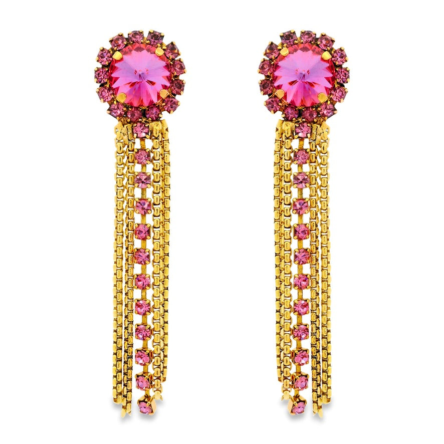 Add a touch of vintage charm with the Kendra Earrings. These playful beauties feature an antique gold-plated brass base adorned with sparkling high-quality crystals. Measuring 2.25 inches long, they dangle with just the right amount of flair. Plus, their hypoallergenic surgical steel posts keep your ears happy and irritation-free—perfect for all-day wear with a wink!