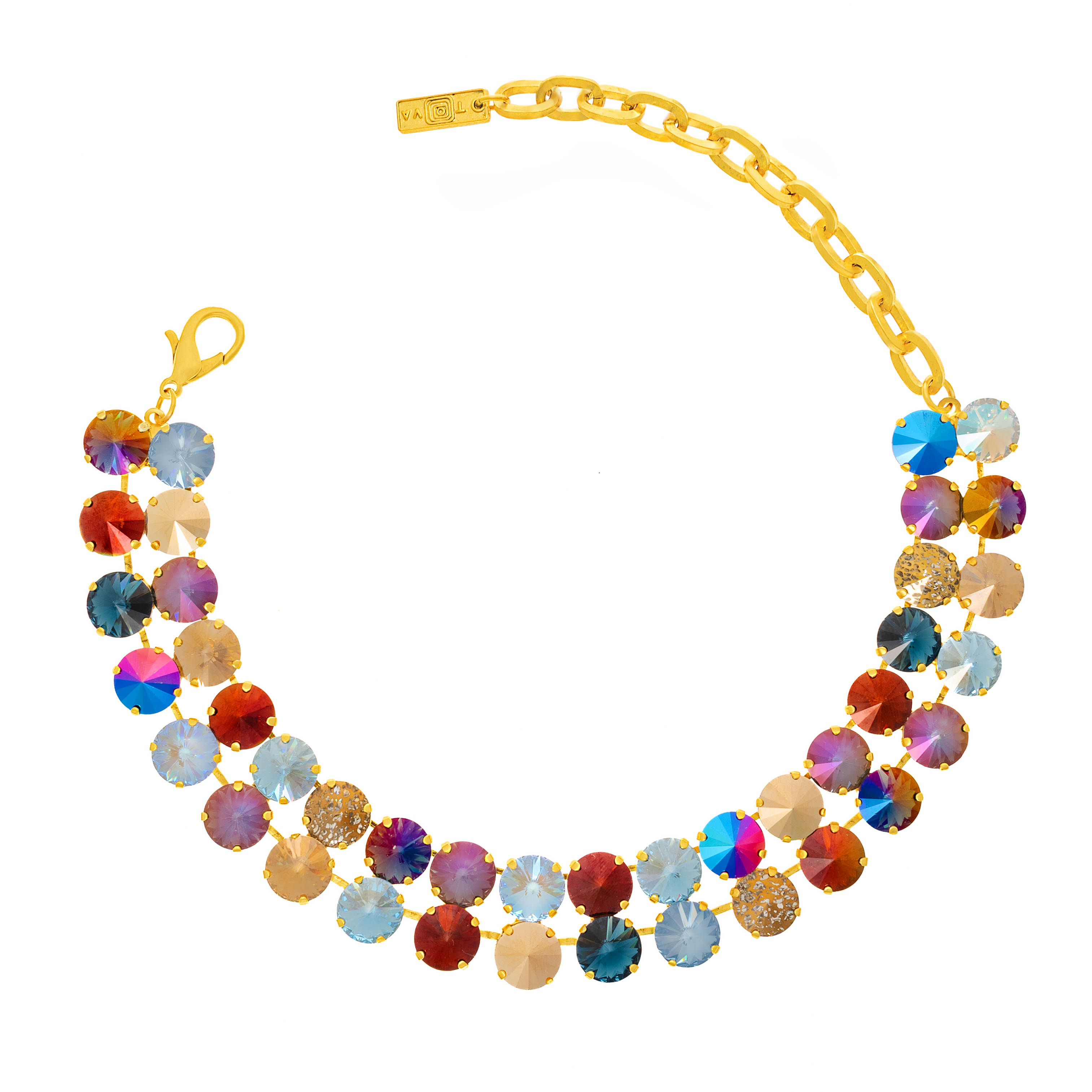 Look glamorous like never before with the Mini Nova Choker in Midnight Express! It's a sparkly show-stopper, crafted with a 11" Antique Gold plated Brass base and high quality crystals for an exquisite and blinged-out look. And with a 3.5" extension, this choker is made to last. Let's get this party started — made in Canada!