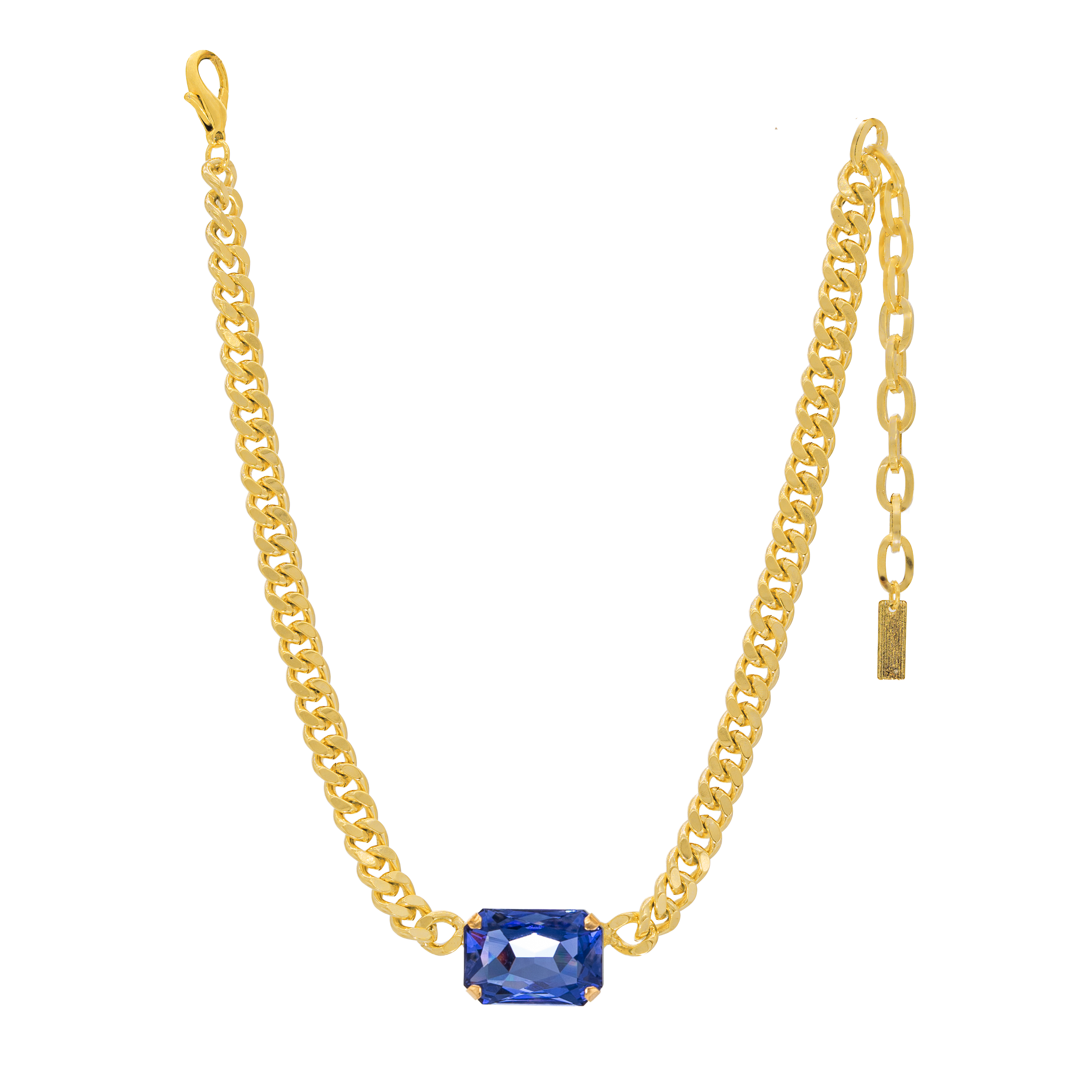Add a touch of sparkle to your look with the Darcy Necklace in Tanzanite. Crafted from antique gold-plated brass and high-quality crystal, this 14" necklace features a 3.5" extender for the perfect fit. Its shimmering design effortlessly brightens any outfit, making it your new favorite statement piece.