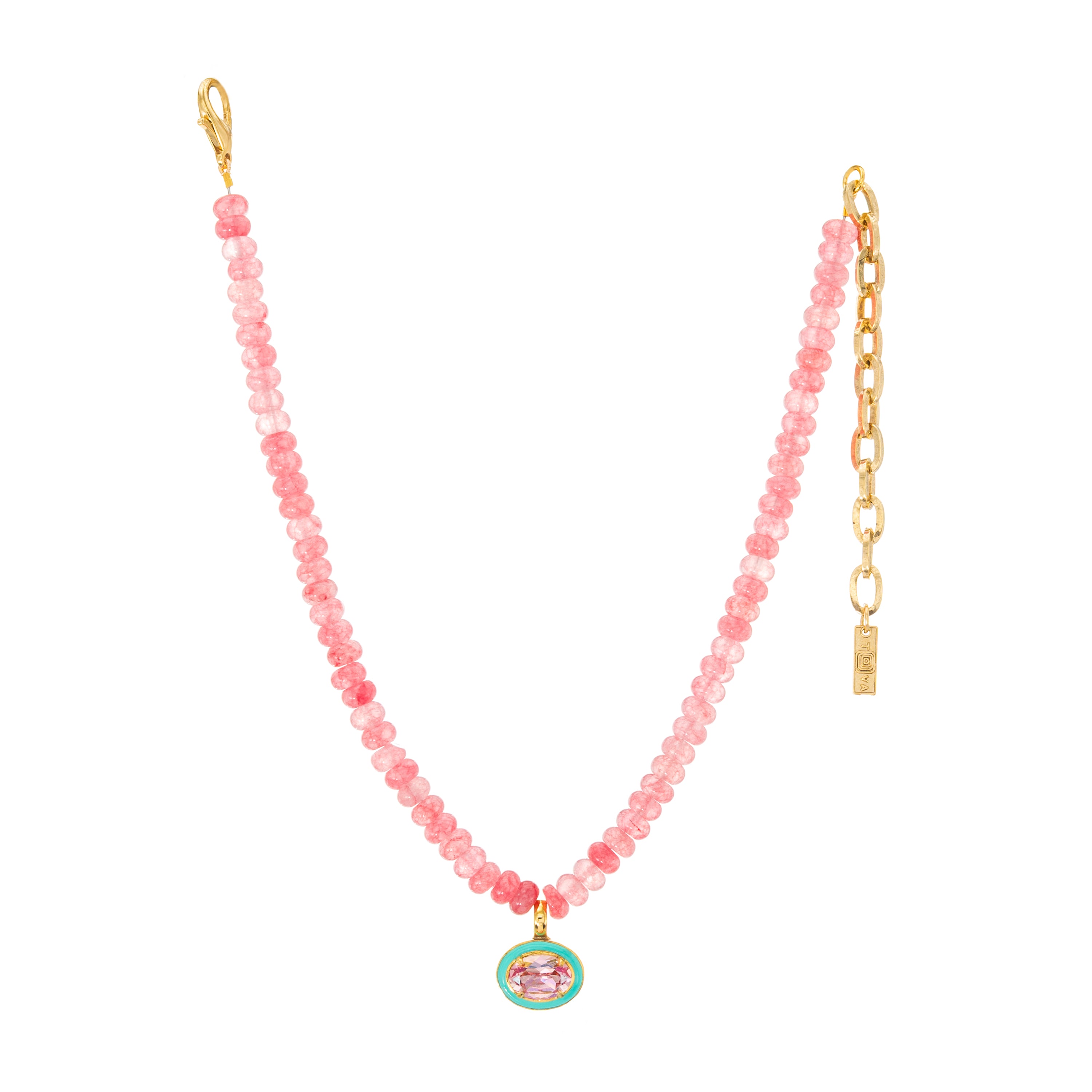 Liven up your look with the Gracie Necklace! This sparkly stunner will have you turning heads, featuring high quality crystals, hand painted enamel, beautiful beads and an antique gold-plated brass base metal made with love in Canada. Whether you're clinching a big deal or just looking to impress, this beauty's 14" chain and 3.5" extension will do the trick. Oh la la!