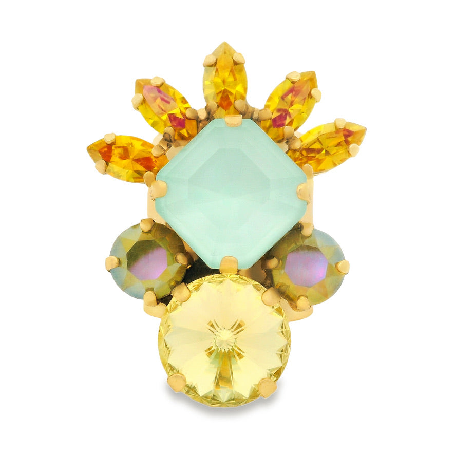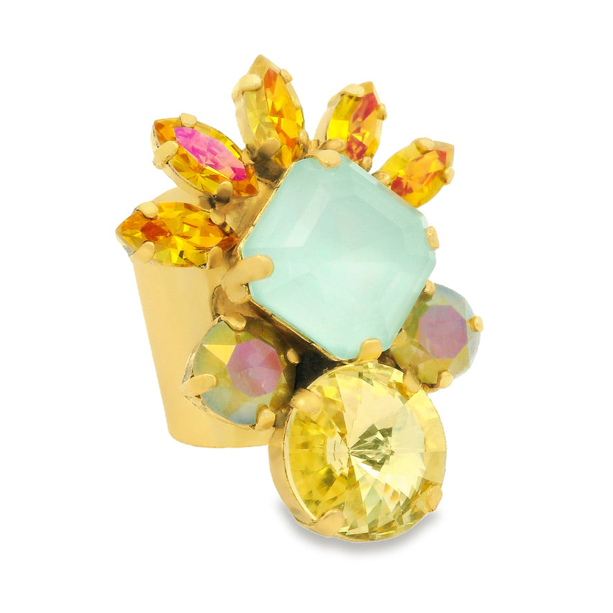 Introducing the Lysandra Ring - a statement piece with old-world charm. Crafted with a high-quality, antique gold-plated, brass base metal, it features adjustable sizing and shimmering crystals. A timeless classic, made with love.