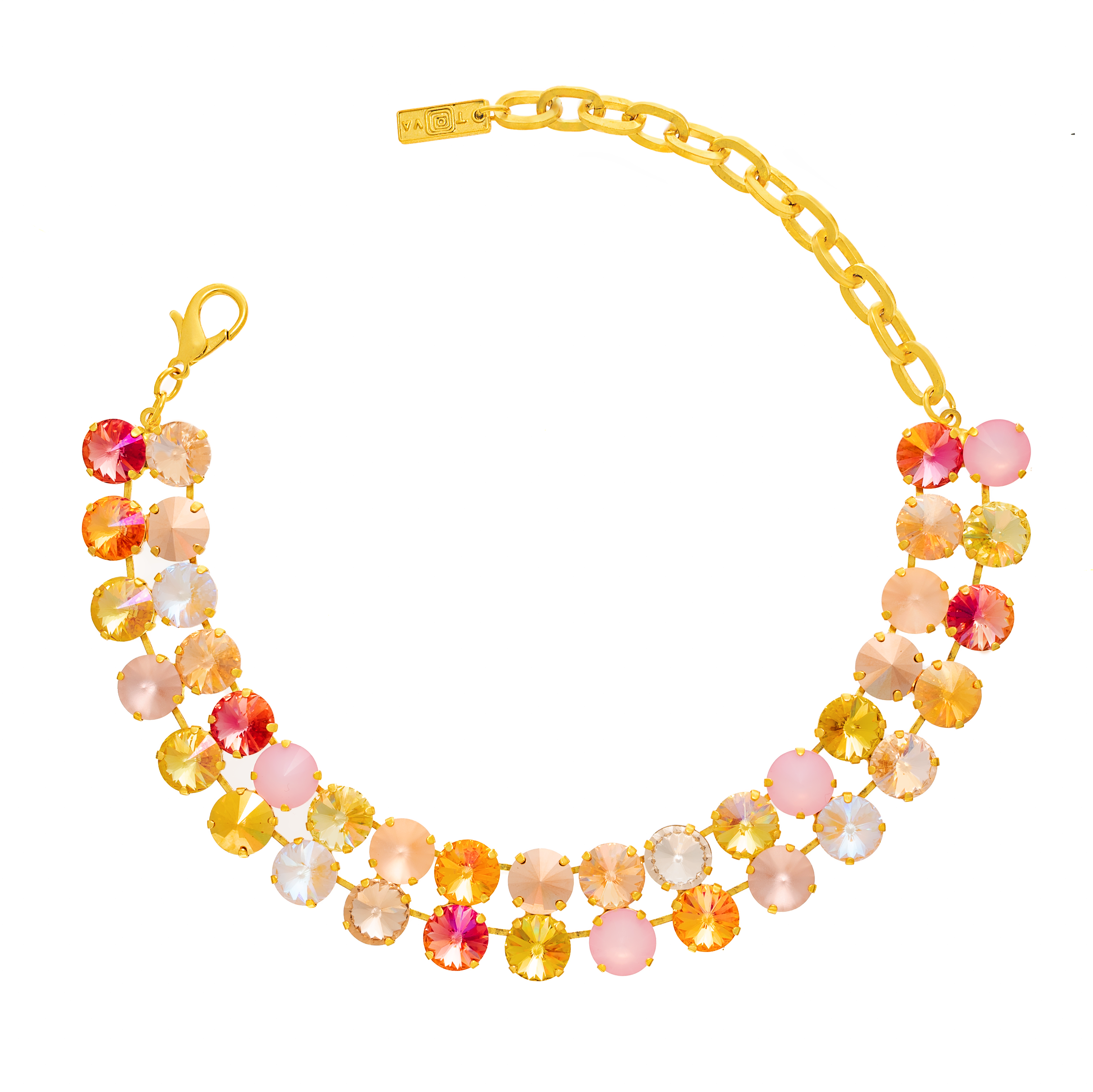 Look glamorous like never before with the Mini Nova Choker in Candy Glam Blush! It's a sparkly show-stopper, crafted with a 11" Antique Gold plated Brass base and high quality crystals for an exquisite and blinged-out look. And with a 3.5" extension, this choker is made to last. Let's get this party started — made in Canada!