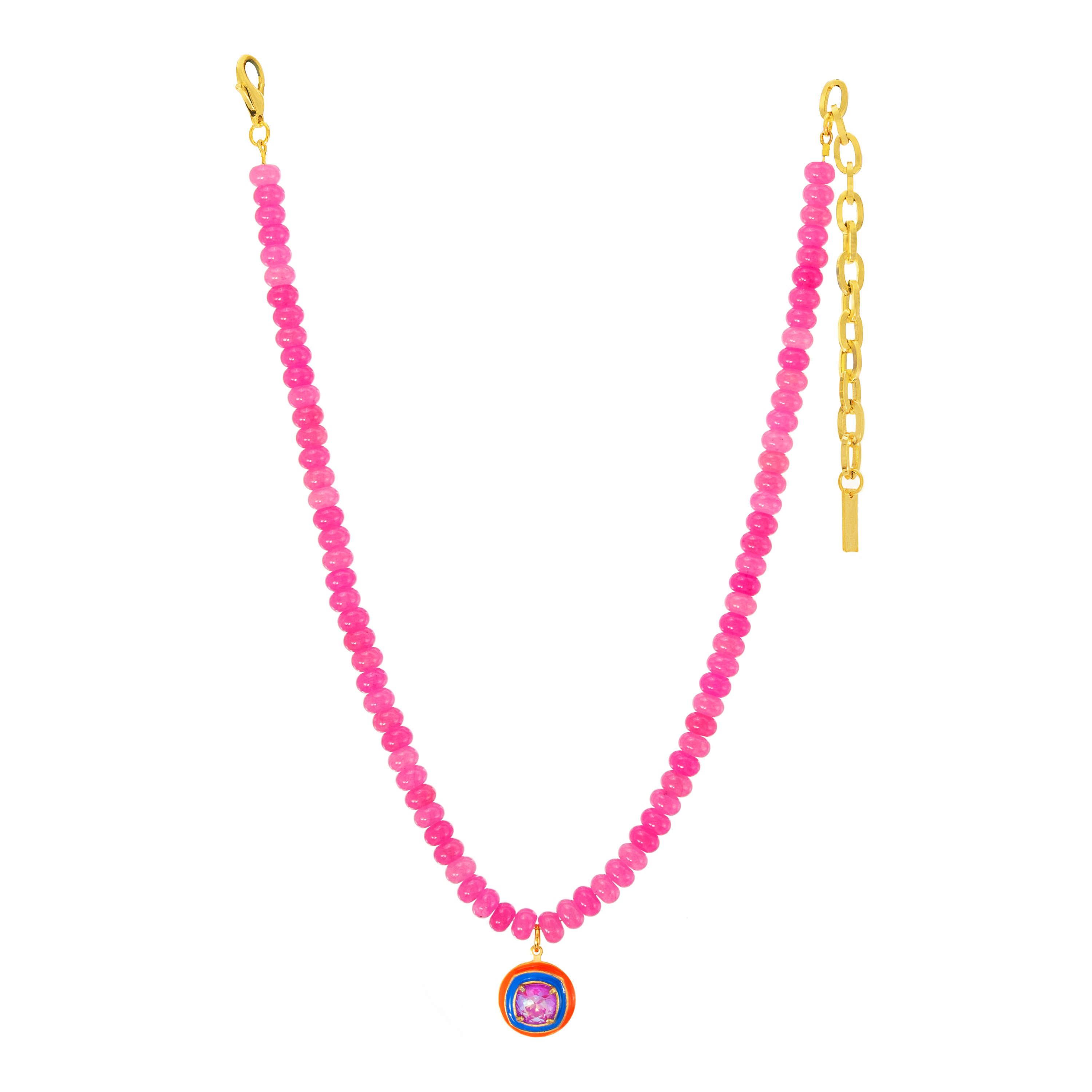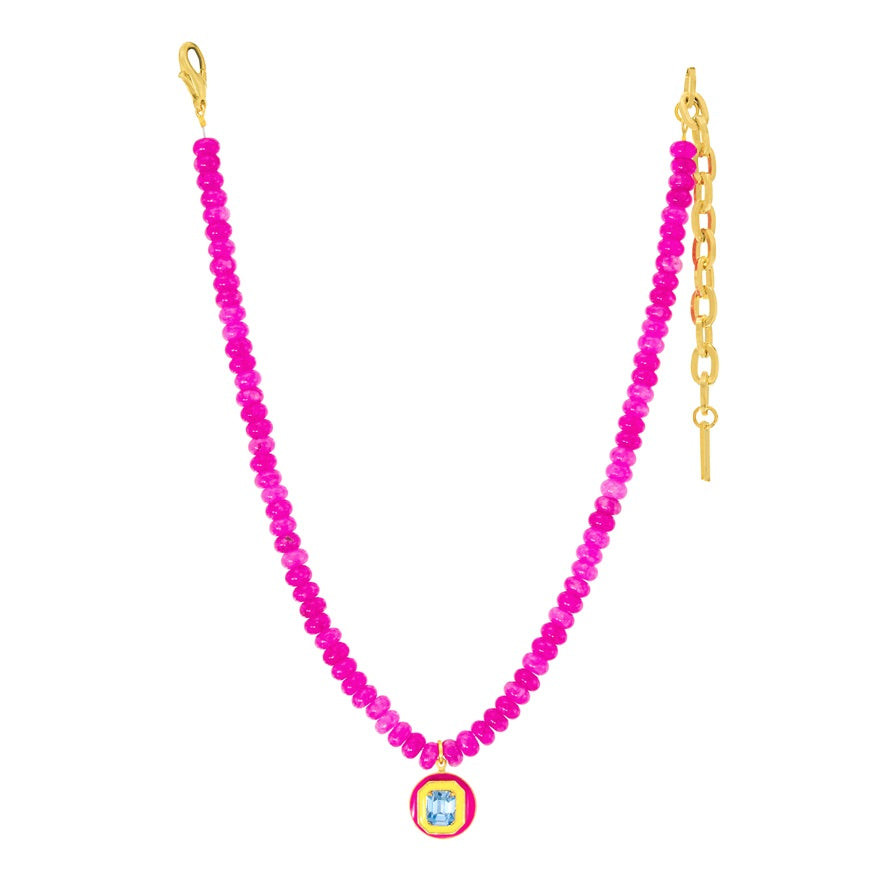 Liven up your look with the Marilyn Necklaces! This sparkly stunner will have you turning heads, featuring high quality crystals, hand painted enamel, beautiful beads and an antique gold-plated brass base metal made with love in Canada. Whether you're clinching a big deal or just looking to impress, this beauty's 16" chain and 3.5" extension will do the trick. Oh la la!