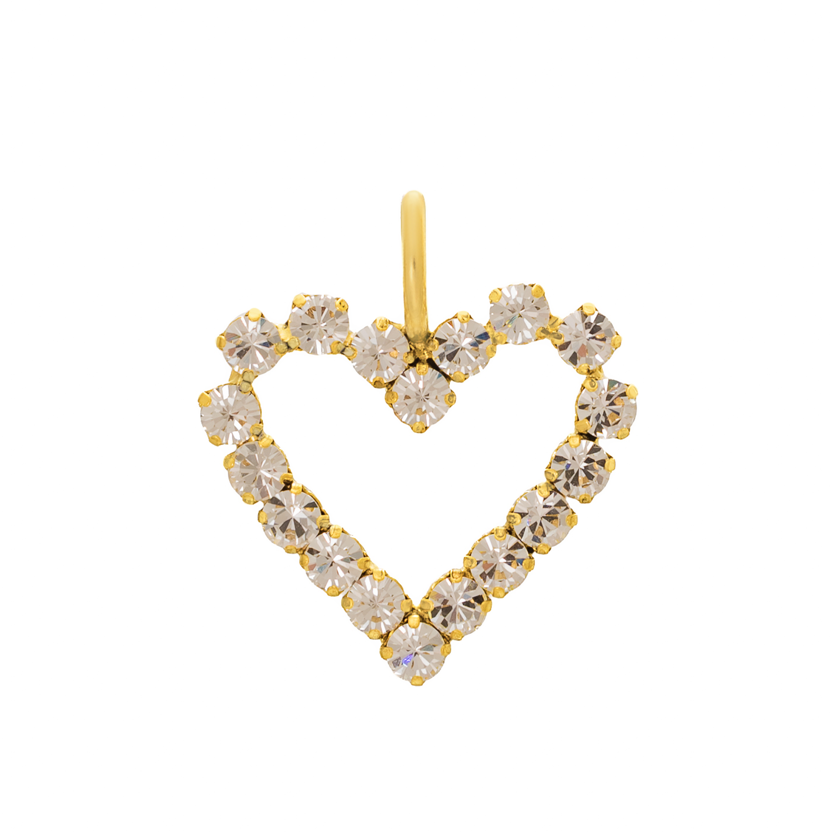 Add a touch of vintage charm to your look with the POP Heart Small Pendant. Crafted from antique gold-plated brass and sparkling high-quality crystals, this 1.75" pendant slides effortlessly onto your favorite necklace, making every outfit shine a little brighter. Perfect for those who love a playful twist on timeless elegance!