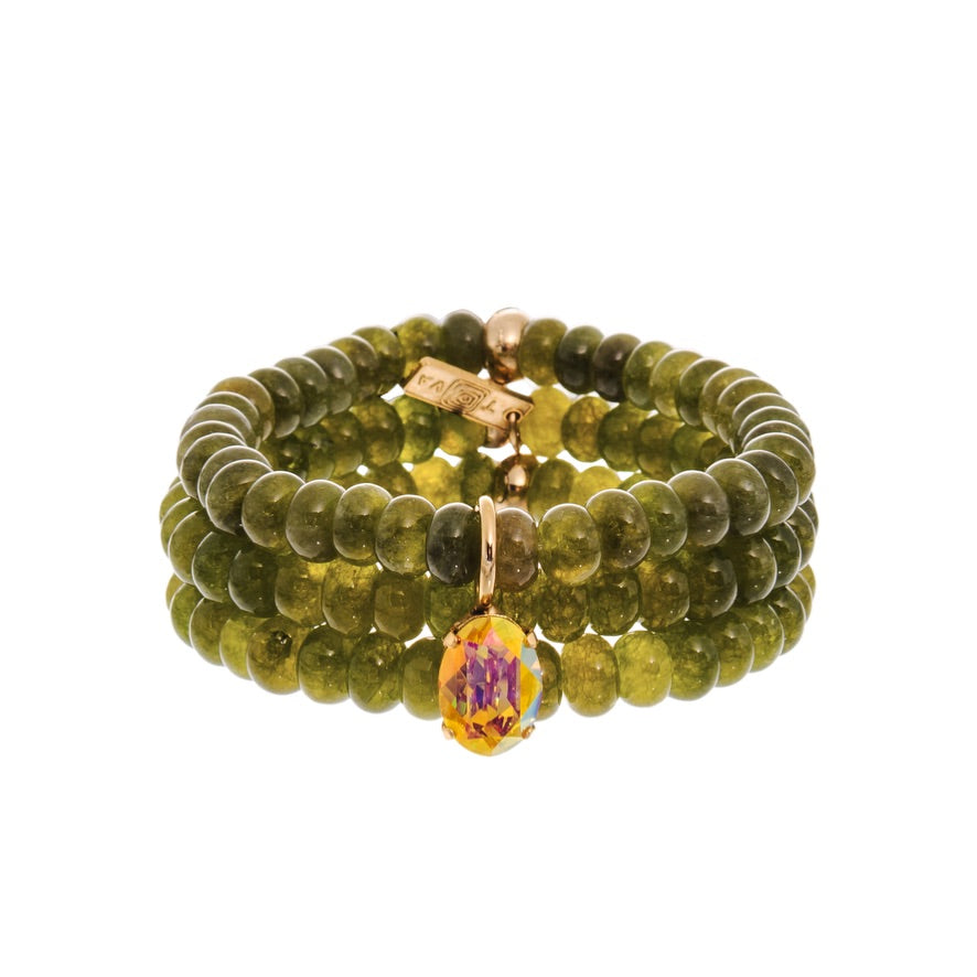 Make a statement with this Belton Bracelet! Show off your personality with its antique gold plated brass base metal, high quality crystals and beautiful beads add an extra touch of glam. It features a stretch elastic fitting most wrists. Designed and made in Canada.