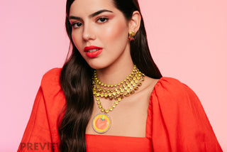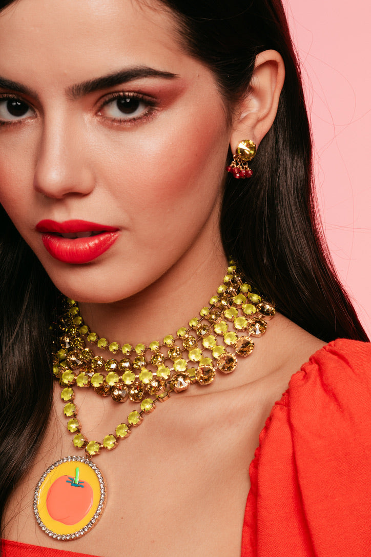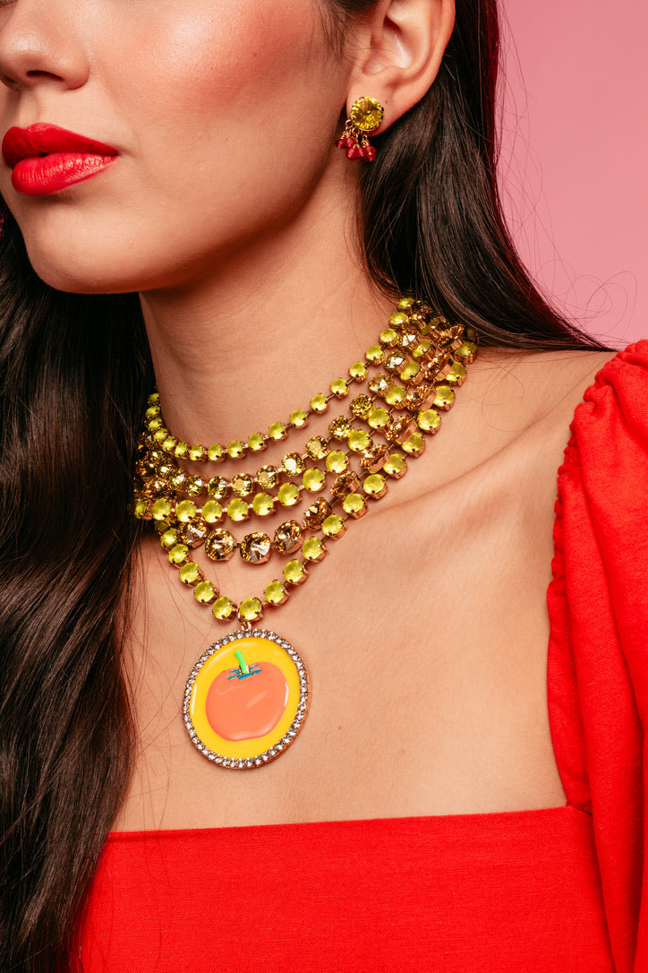 Wear your heart on your neck with the Candy Apple Necklace! Featuring an antique gold plated brass base and high-quality crystals, this statement piece will leave you dazzling no matter what angle you're at. With a beautiful hand-painted enamel charm. 13" in length and 4" extension, it's the perfect way to add a (golden) touch of Canada to your wardrobe.