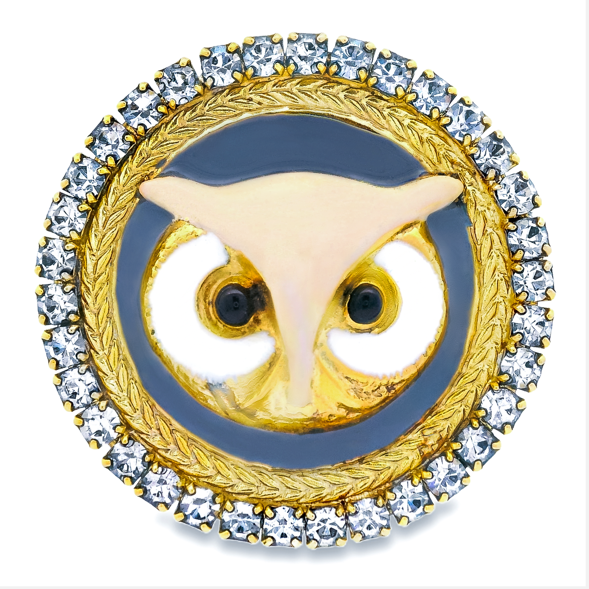 Introducing In the Wally Hoot Brooche, the perfect addition to your accessory collection. This antique gold plated brooch is crafted with high quality brass base metal, adorned with sparkling crystals, and hand painted with enamel. Proudly made in Canada, this brooch adds a touch of elegance and charm to any outfit.