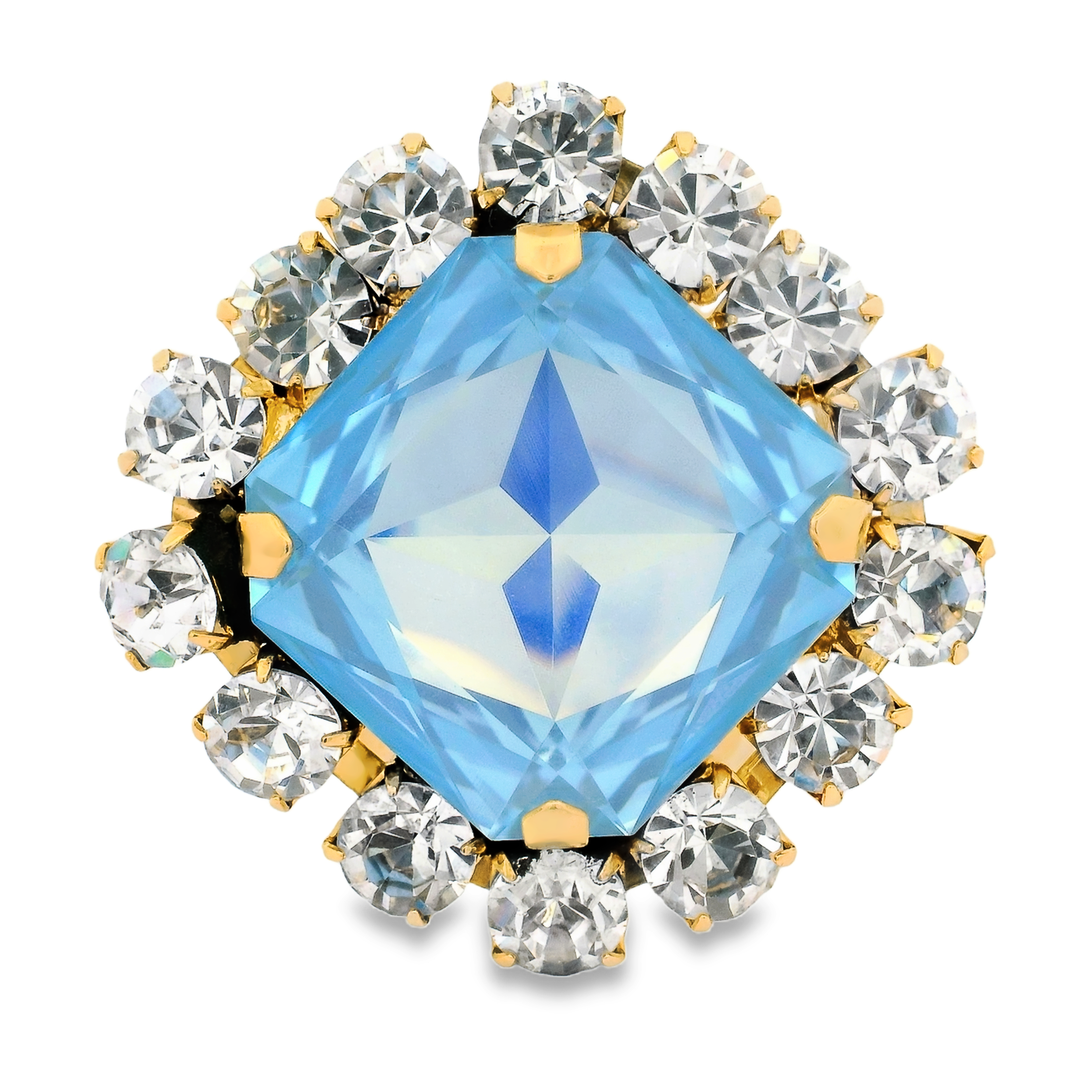 Add a touch of sparkle with the Sylvia Ring in Ultra Baby Blue. Crafted from antique gold-plated brass and adorned with a high-quality crystal, this adjustable ring brings timeless elegance with a playful twist. Perfect for brightening any outfit, it’s a charming accessory that fits just right every time.