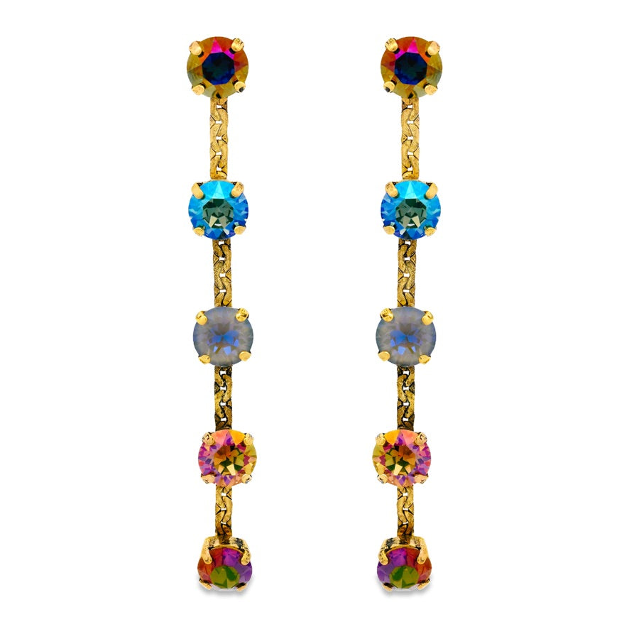 Add a touch of sparkle with the Lilith Earrings in Midnight Express. These 2.75" beauties feature high-quality crystal set on an antique gold-plated brass base, combining vintage charm with modern shine. The hypoallergenic steel posts keep your ears happy, so you can play all day and night without a worry. Perfect for adding a little magic to any outfit!