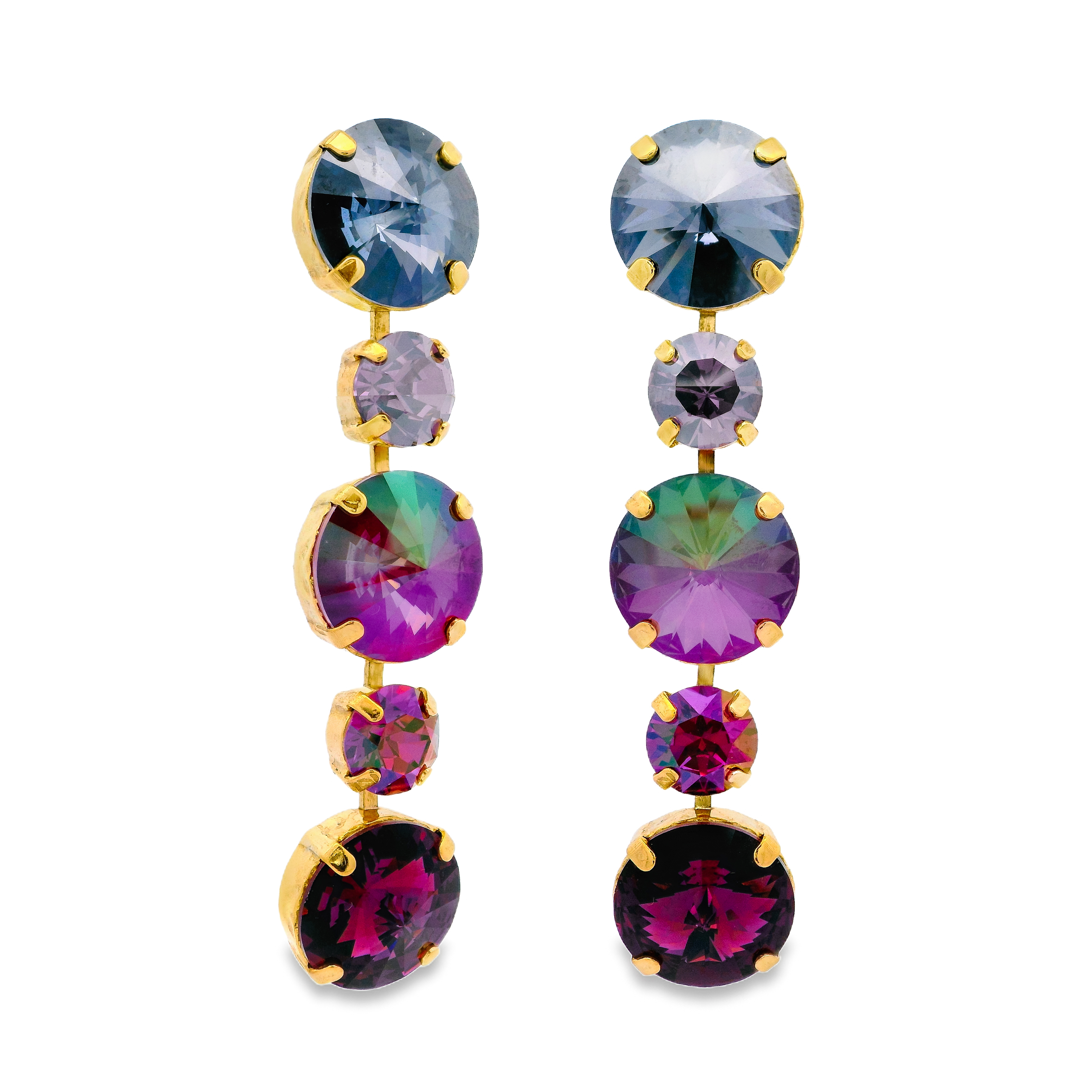 Add a touch of sparkle with the Reagan Earrings in Midnight Express Maroon. These playful beauties feature high-quality crystals set on an antique gold-plated brass base, measuring a charming 2 inches long. Designed with hypoallergenic steel posts, they’re perfect for sensitive ears and guaranteed to brighten any outfit with a dash of elegant fun.