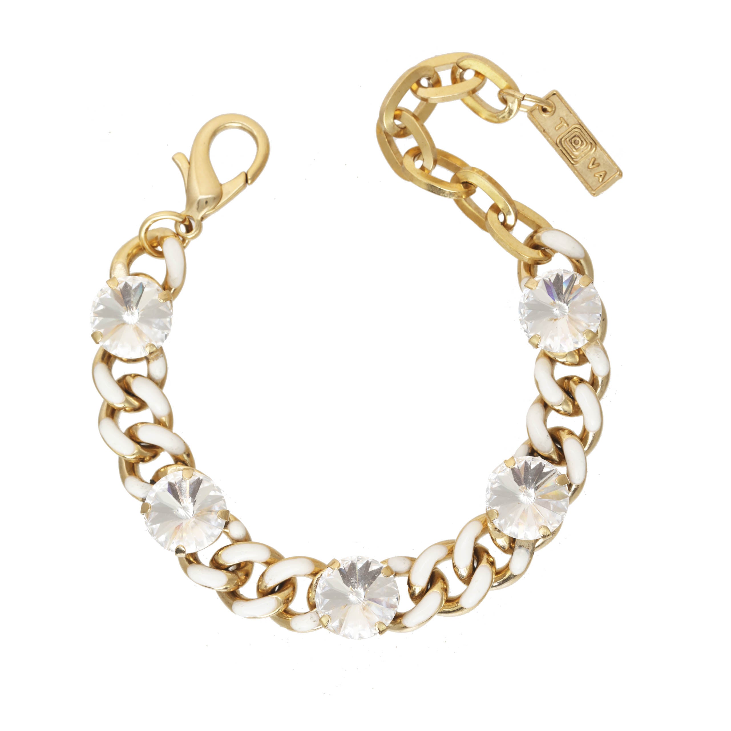 Treat yourself to a cosmic accessory with our Galileu Bracelet in White! These beaming beauty boast an antique gold plated brass base metal, hand painted enamel, and high quality crystals. With a 5.75" length and 2" extension, this bracelet is sure to be a stellar addition to your collection!