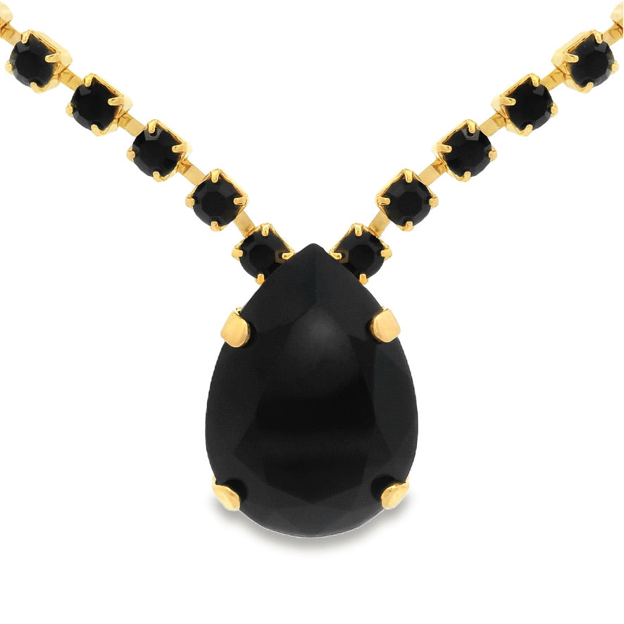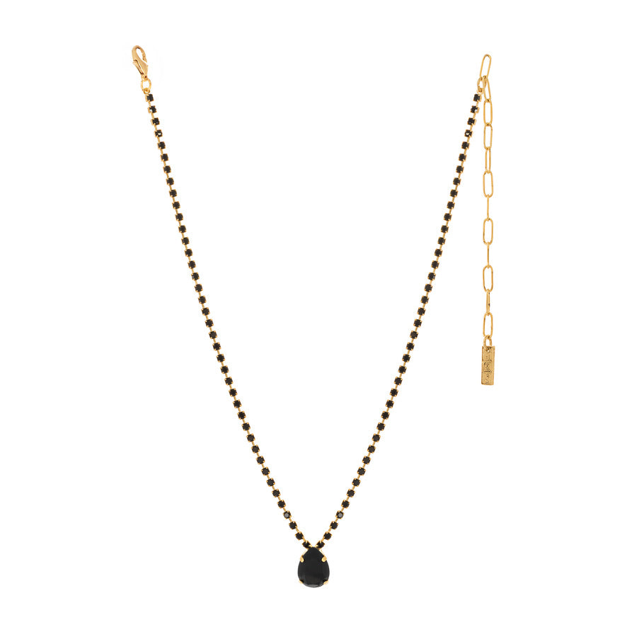 Show off your style with this sparkly Milli Necklace in Light Gold / Jet! This fun-yet-elegant piece has it all -- light gold plating, high quality crystals, and a brass base metal. It measures a sizable 13" with a 3" extension, so you can flaunt your fashion with confidence.