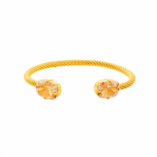 Add a pop of playfulness with the Poppy Cuff in Candy Crush! This antique gold plated brass cuff is adorned with high quality crystals, making it a standout accessory. Its malleable design allows for a comfortable fit and it's proudly made in Canada. Give your outfit a touch of quirky charm with this cuff.