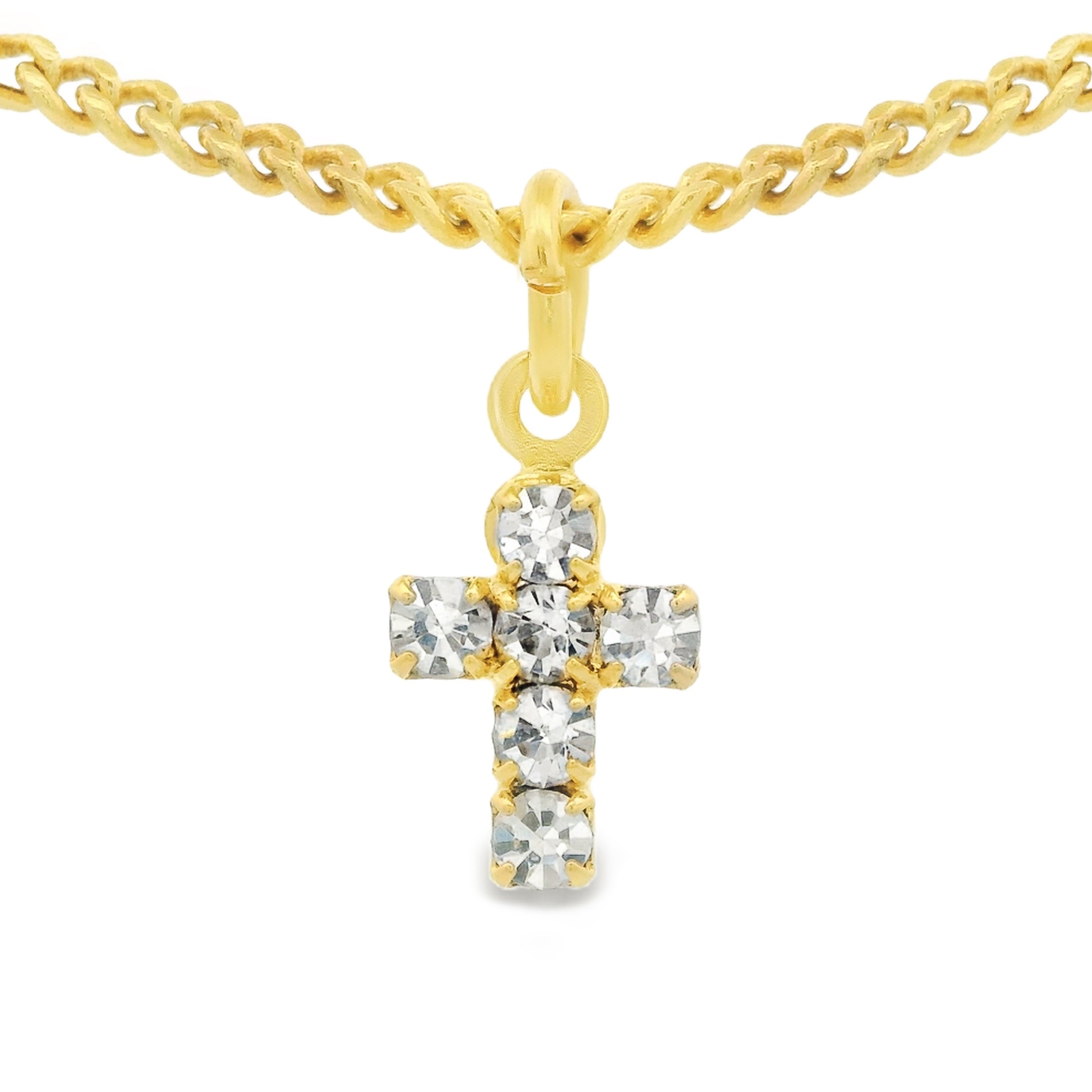 This Single Mini Cross Necklace in Clear is an antique gold-plated beauty that won't break the bank! It's made of brass base metal and comes in a 16" length with a  4" extender so you can give it your own personal touch. Add some flair to your look and get yours today!
