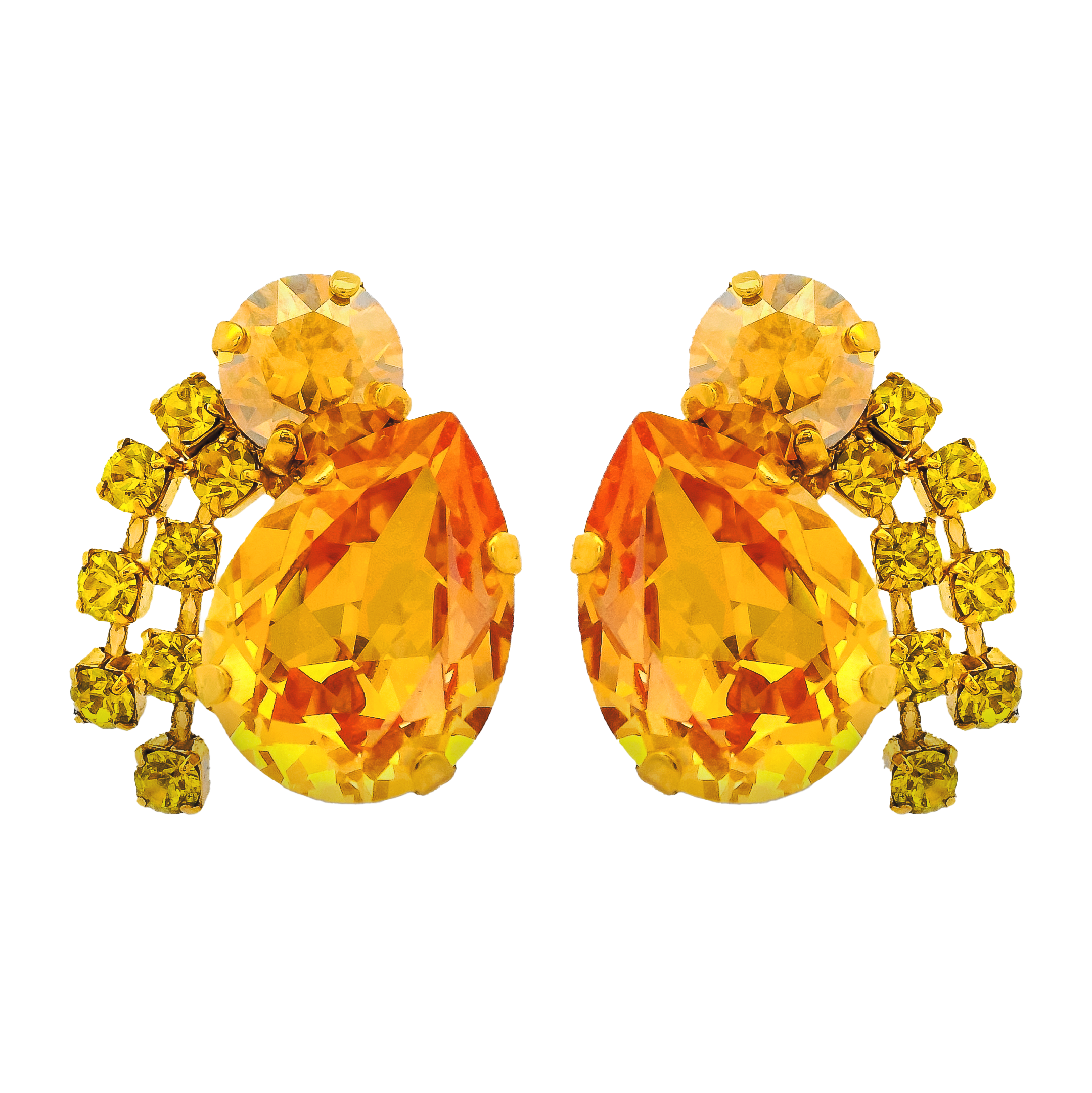 Show your style in these amazing Kindra Earrings. Antique-gold-plated base metal and high-quality crystals make them sparkle while hypoallergenic surgical steel posts make them comfy and safe. 0.8" in length. Make a statement that won't go unnoticed!