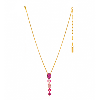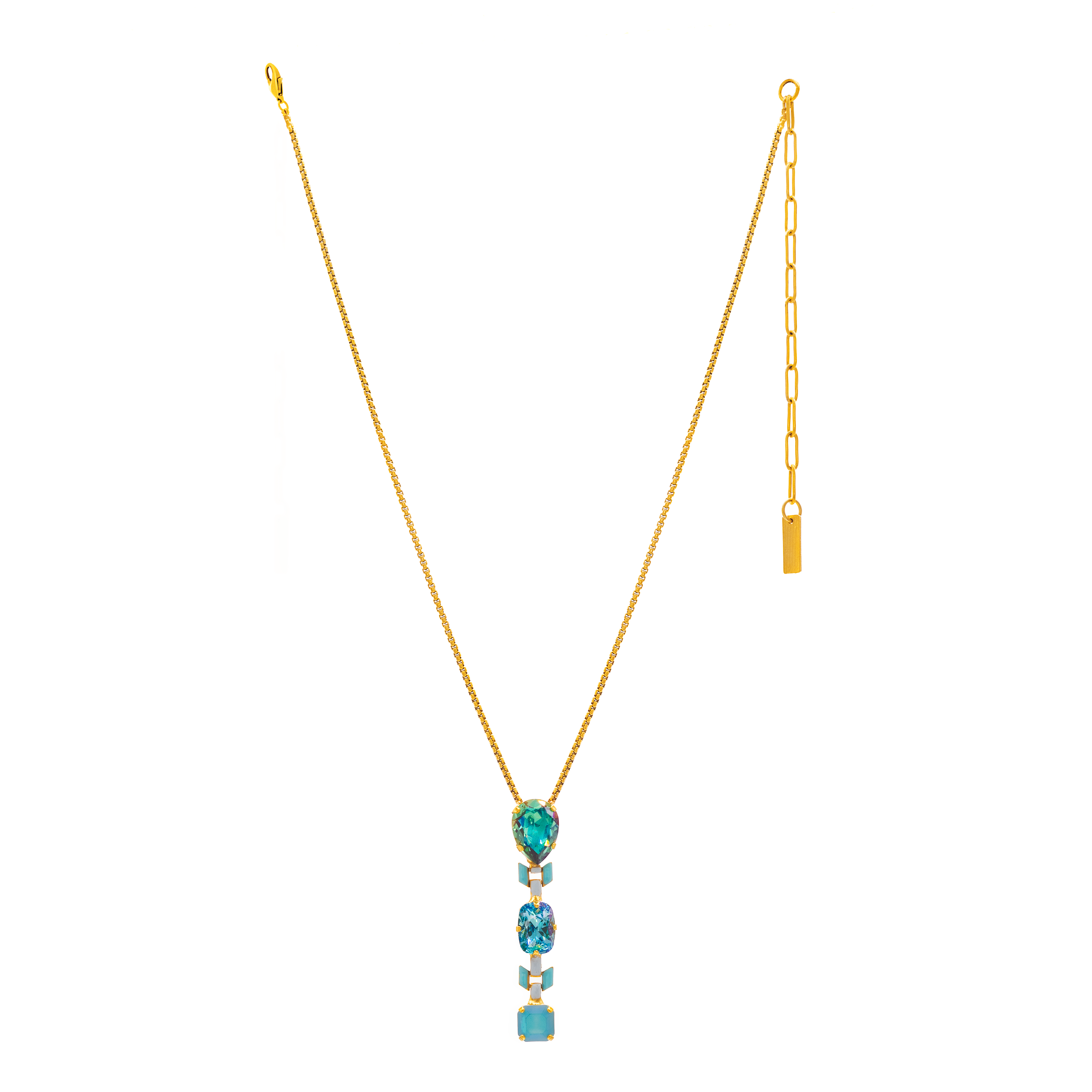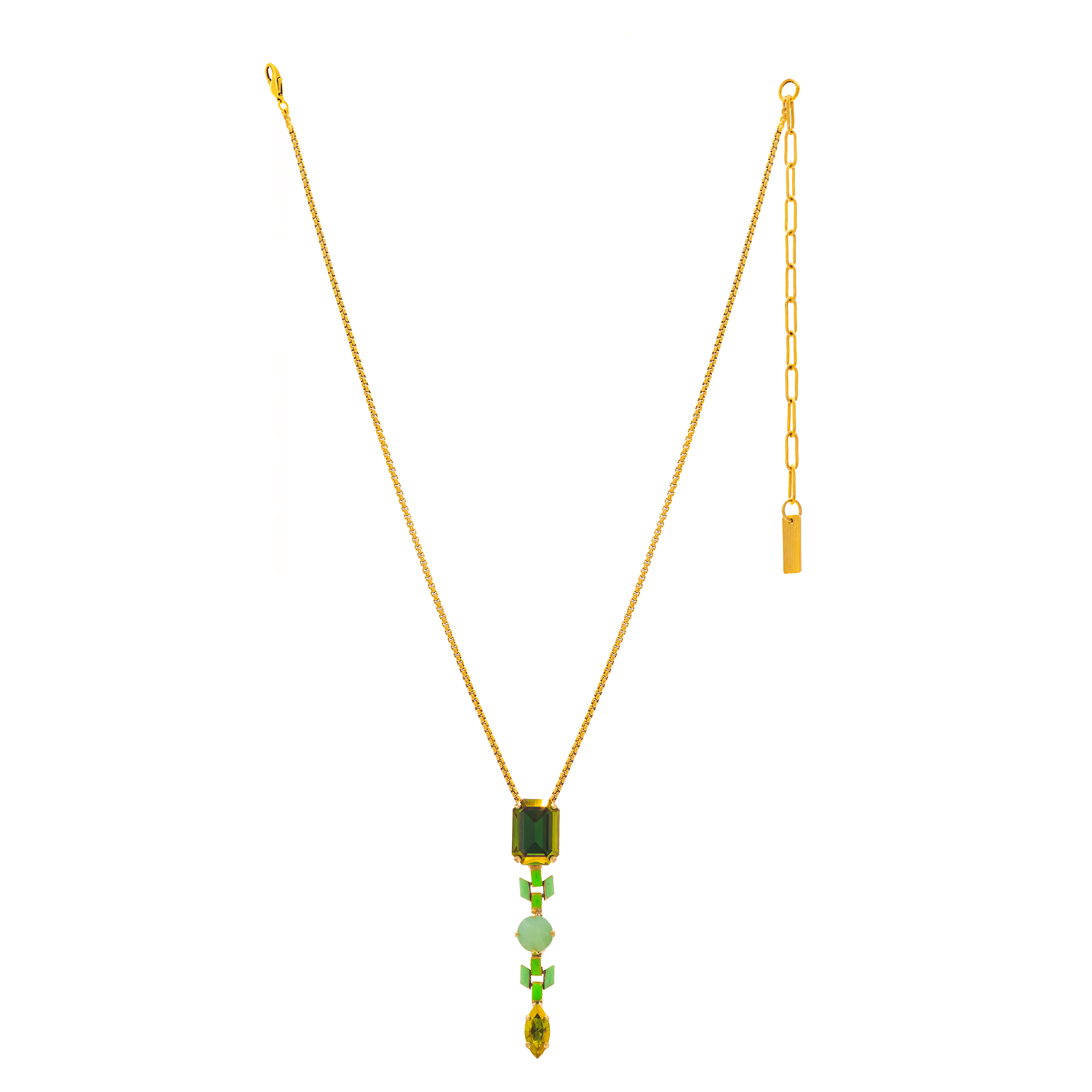 Make a statement with this Vanny Necklace! Show off your personality with its antique gold plated brass base metal, high quality crystals and hand painted enamel add an extra touch of glam. 17" in length, with 2.25" drop and 4" extension. Designed and made in Canada.