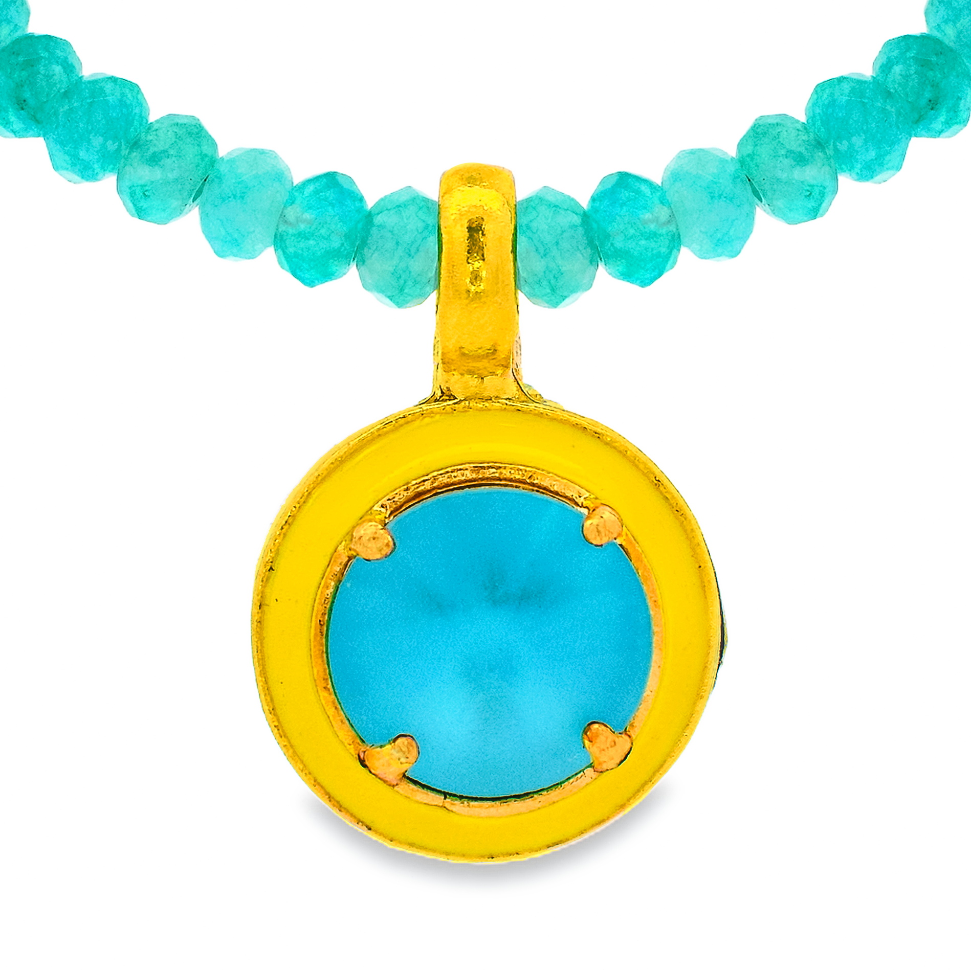 Make a statement with this Dakota Necklace in Yellow! Show off your personality with its antique gold plated brass base metal, high quality crystals, hand painted enamel and beautiful beads add an extra touch of glam. 17" in length and 4" extension. Designed and made in Canada.