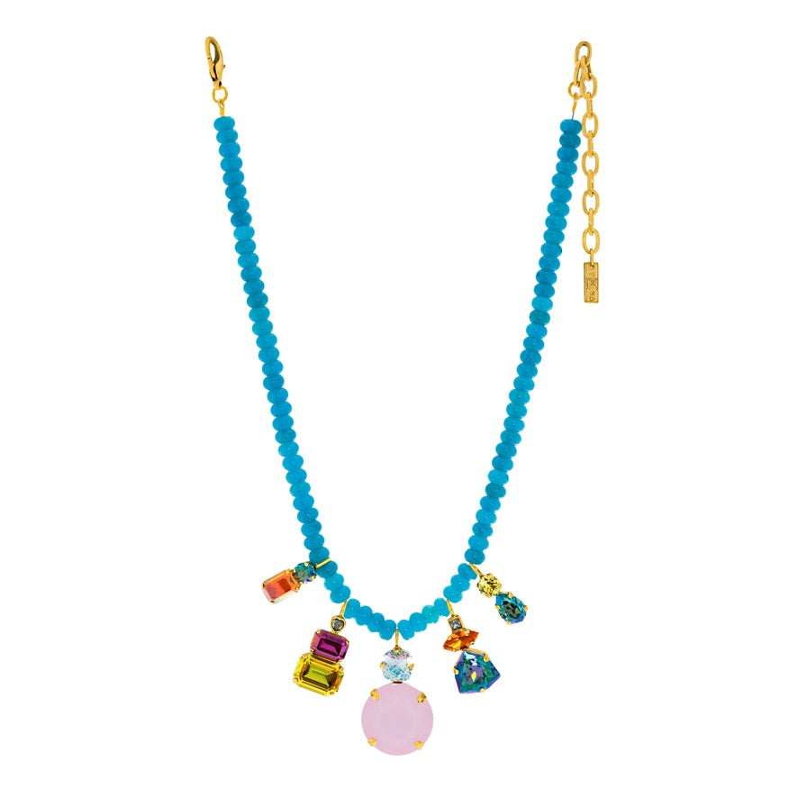 Make a statement with this Maritess Necklace! Show off your personality with its antique gold plated brass base metal, high quality crystals and beautiful beads add an extra touch of glam. 17" in length with 3.5" extension. Designed and made in Canada.