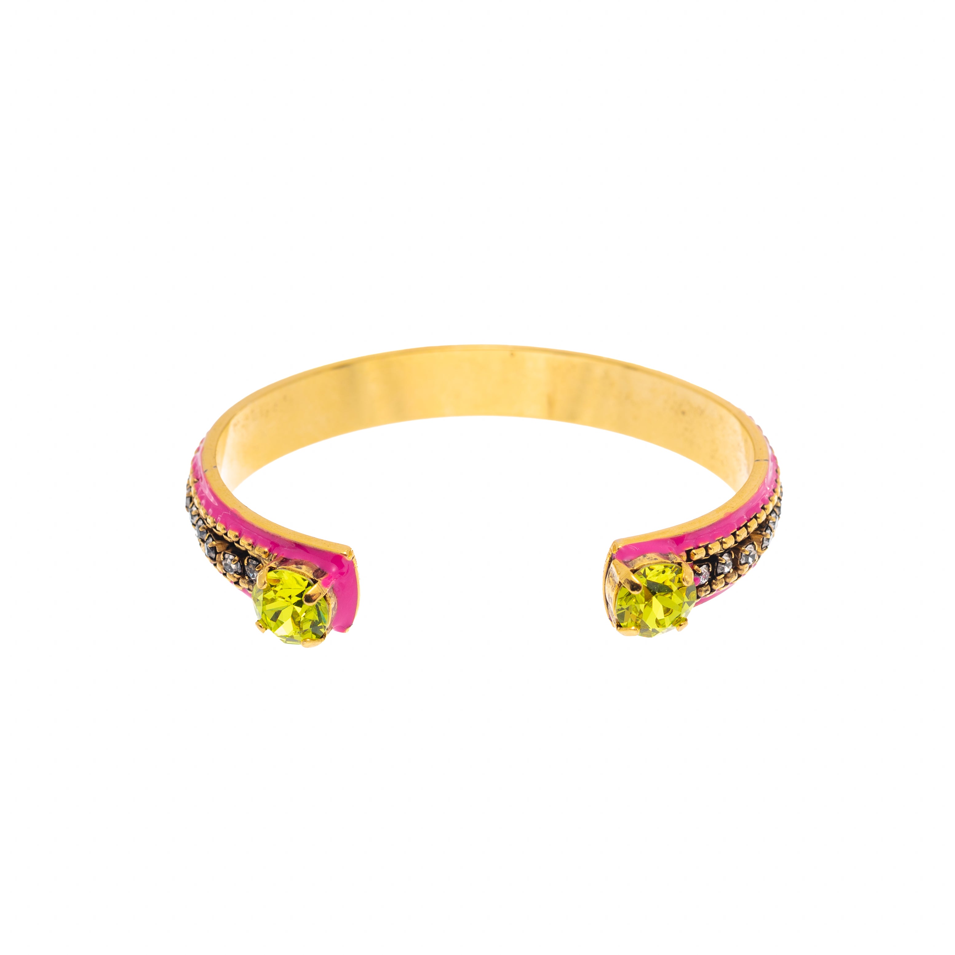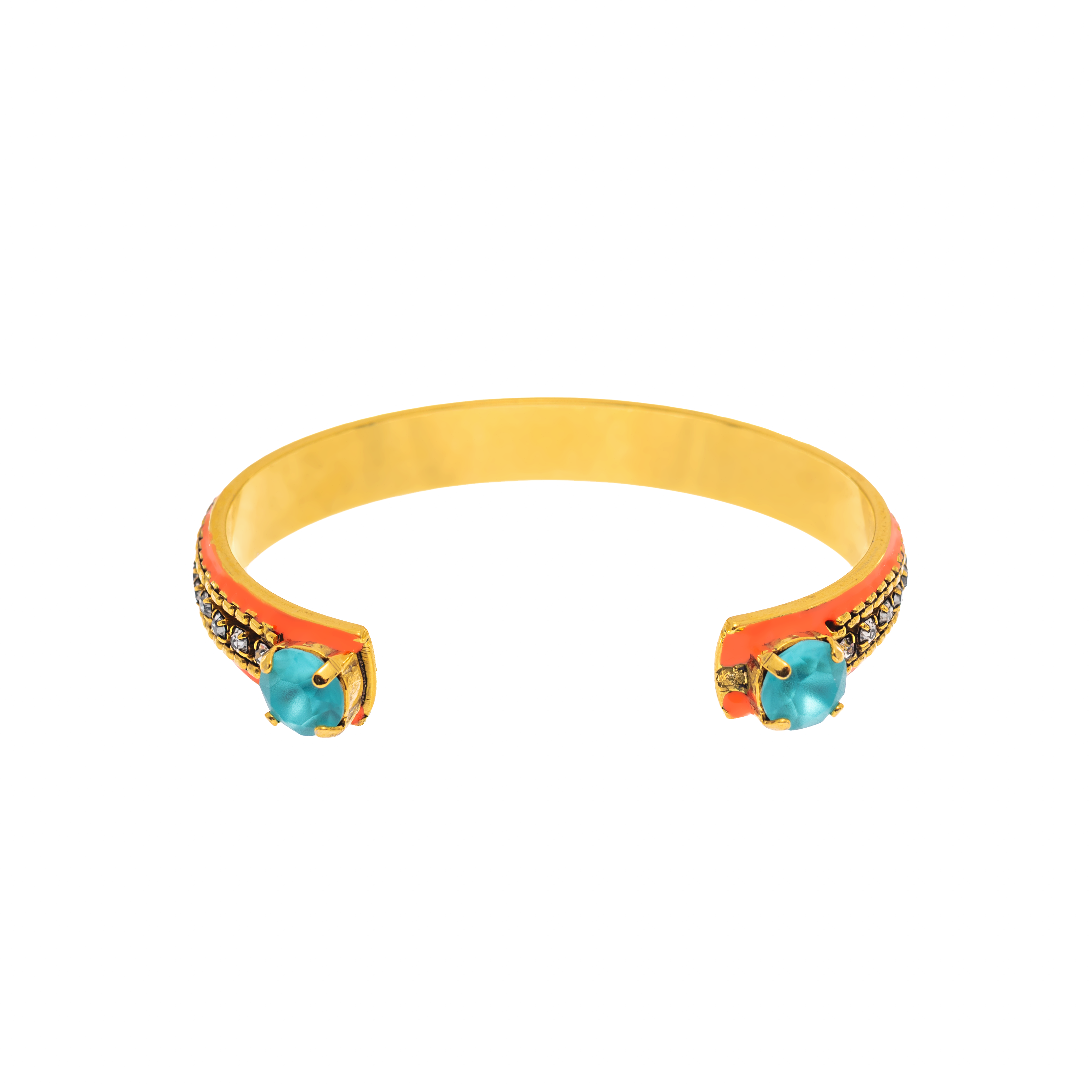 The Kerry Bracelets - a playful and unique addition to your accessory collection. Made in Canada with antique gold plated brass, high quality crystals, and hand painted enamel, this cuff is a one-of-a-kind piece that will add a touch of quirk to any outfit!