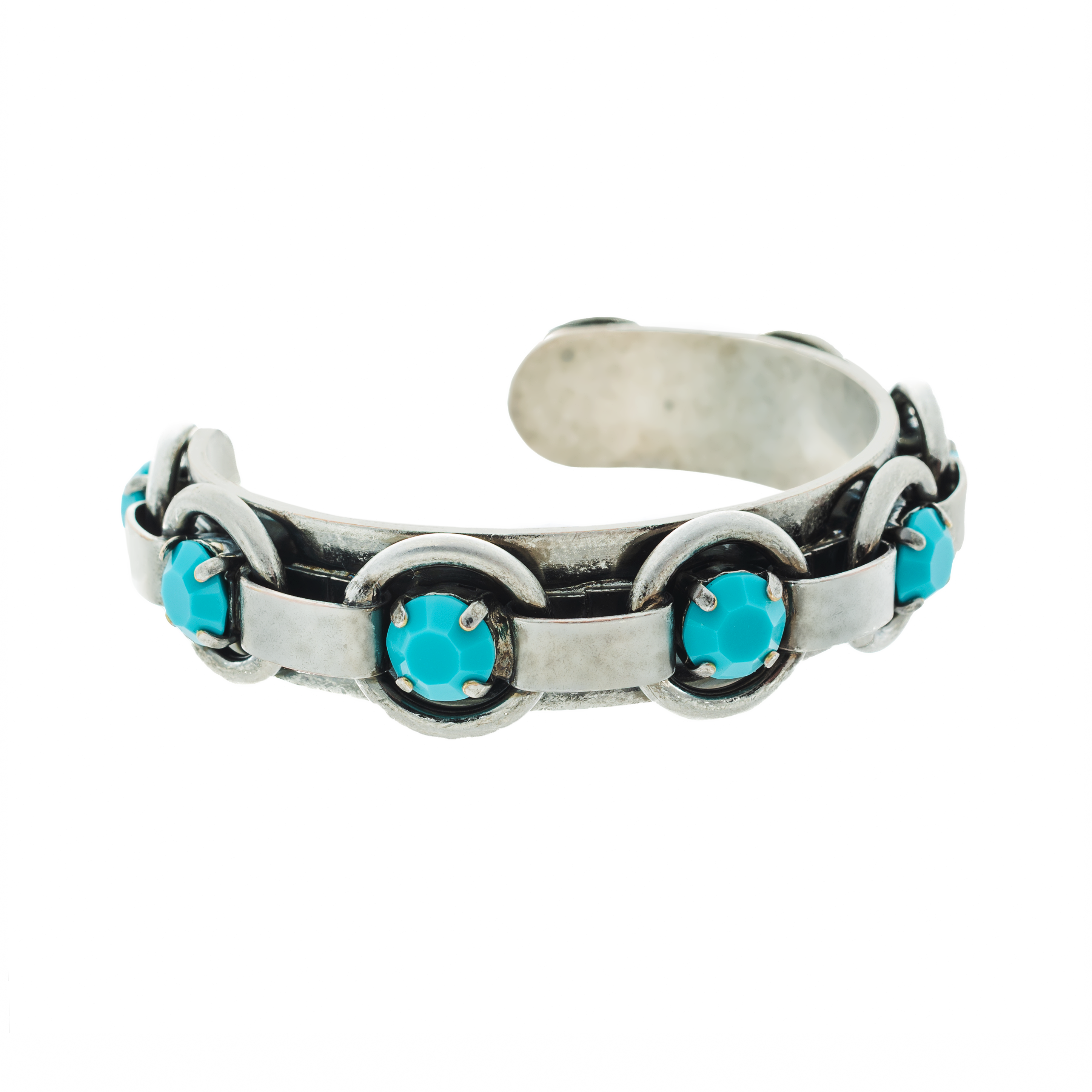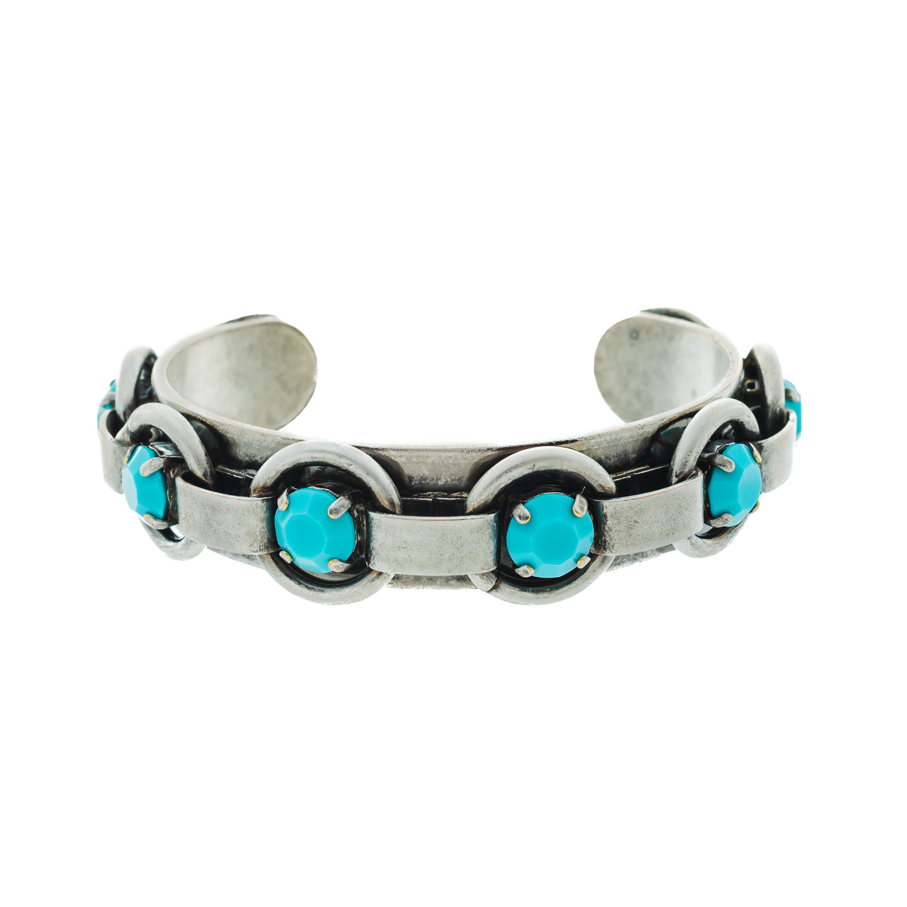 Take your look to the next level with the eye-catching Henley Cuff in Antique Silver / Turquoise! Constructed with a Antique Silver-plated brass base metal and high-quality crystals, this stylish accessory is perfect for adding a luxurious touch to any look. And with its 2.5 inch diameter open side, the Henley Cuff is malleable and handmade in Canada, so you know you're getting a super quality piece! Get ready to make a statement!