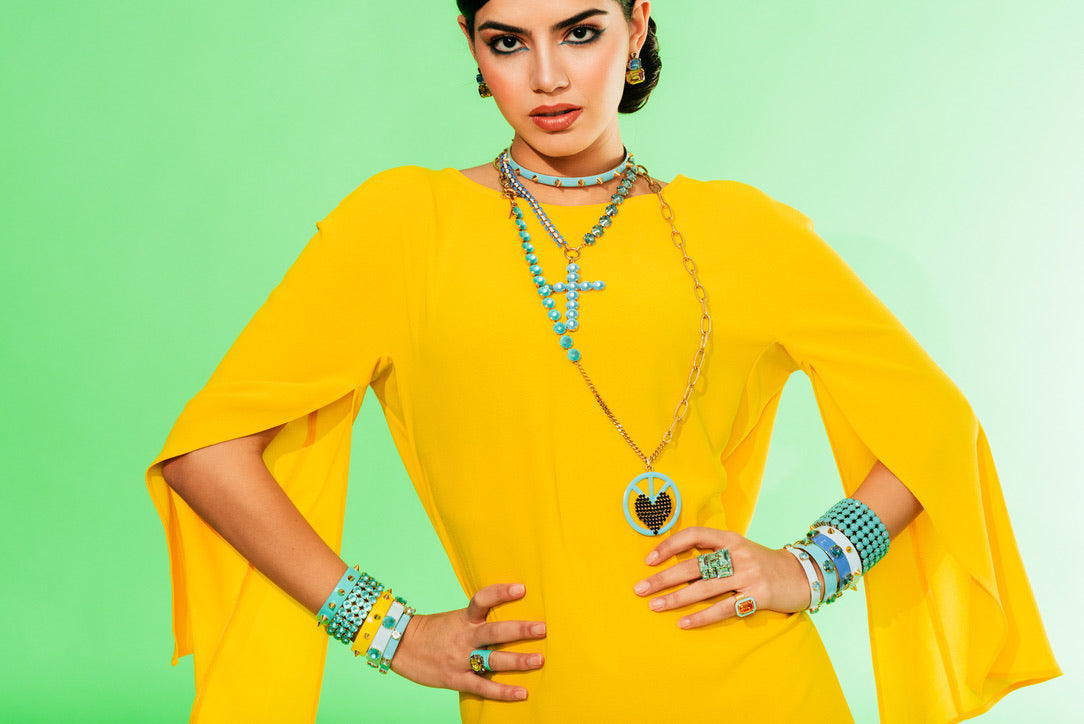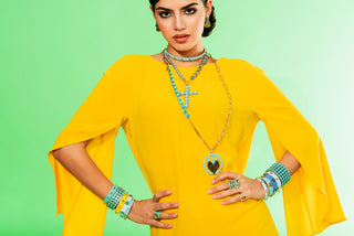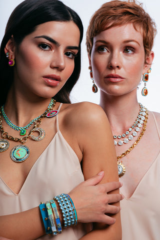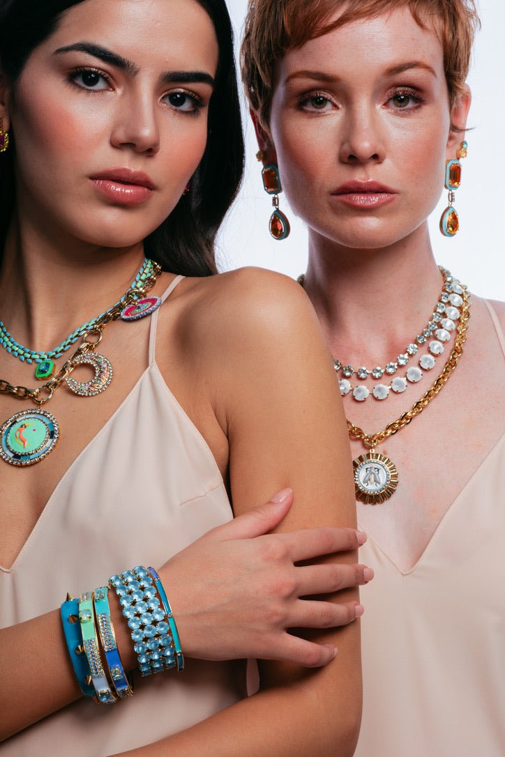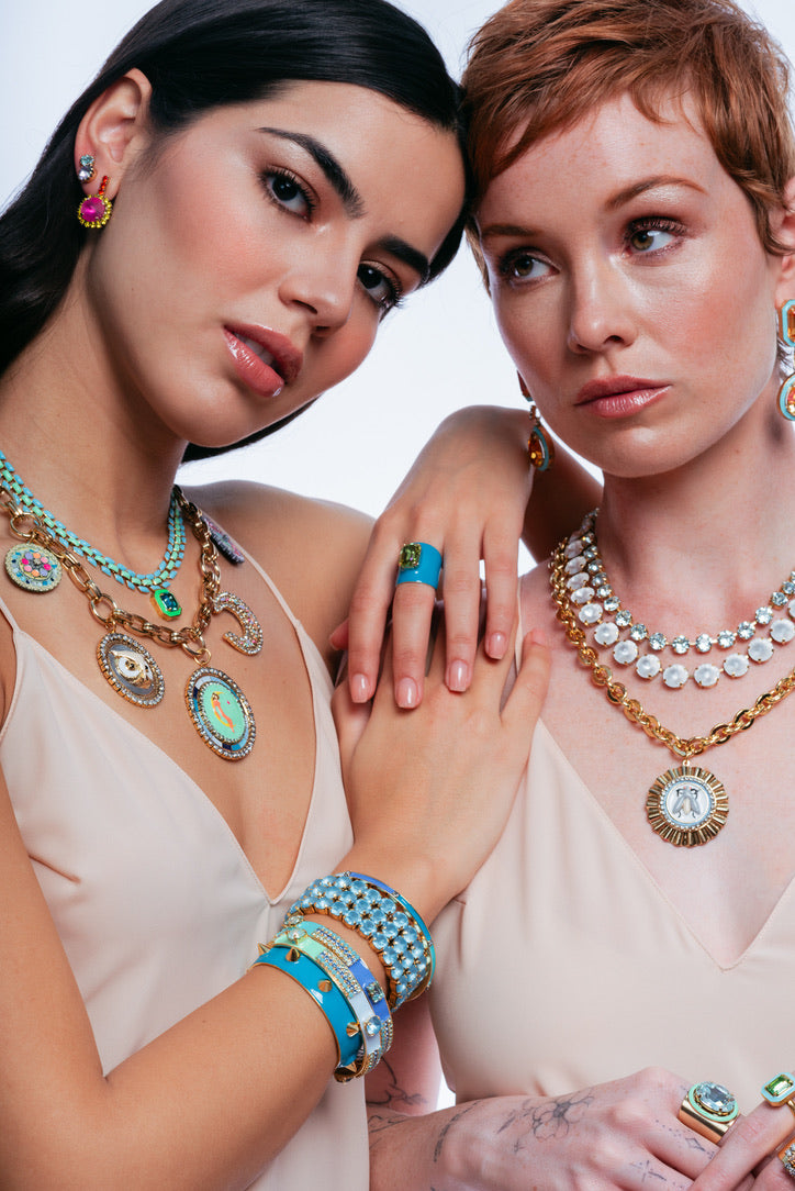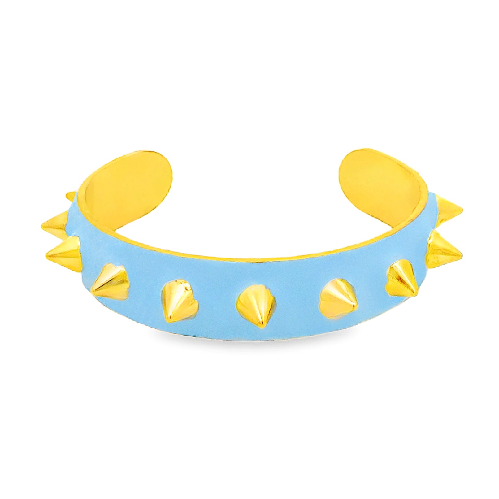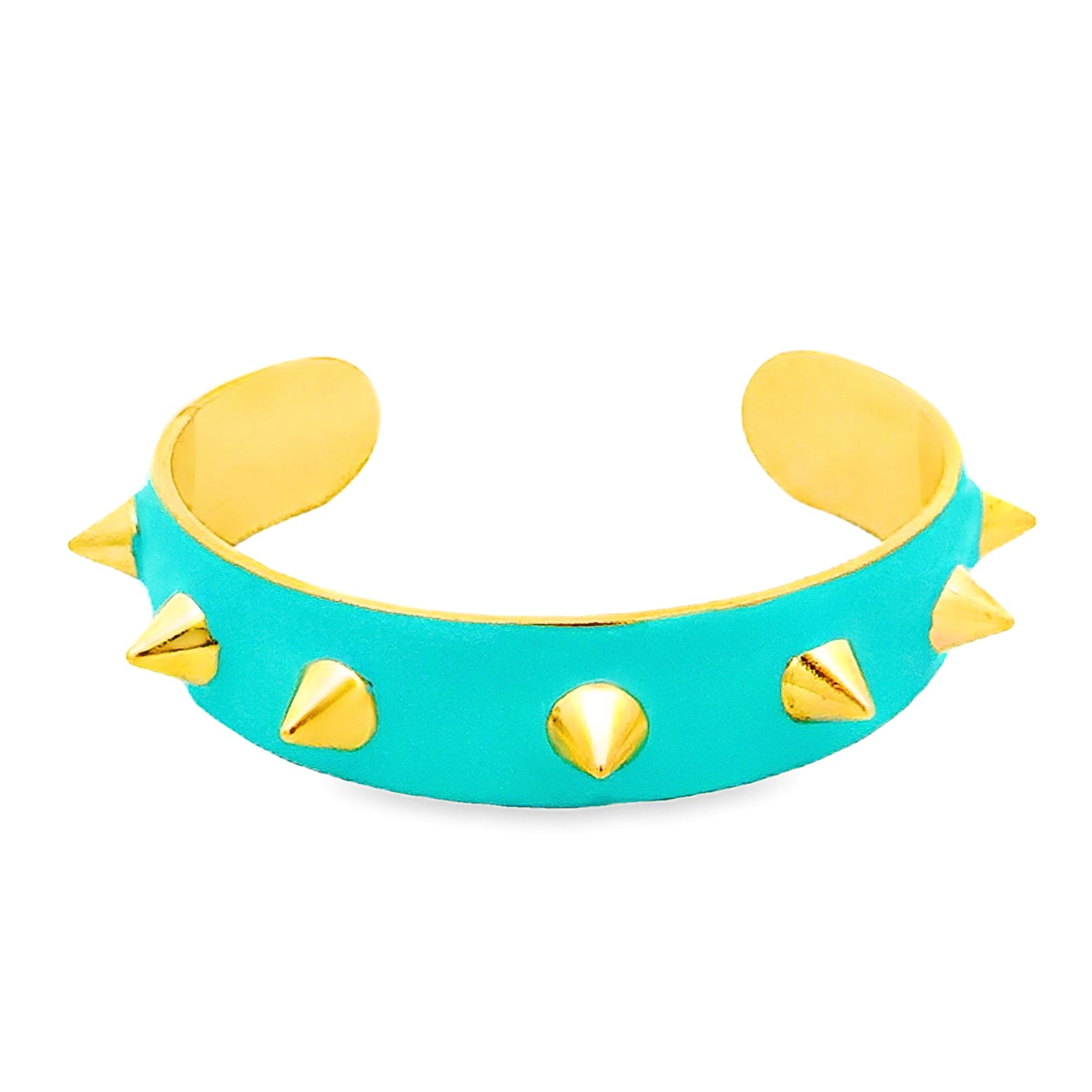 The Ziva Cuff - a playful and unique addition to your accessory collection. Made in Canada with antique gold plated brass, high quality crystals, and hand painted enamel, this cuff is a one-of-a-kind piece that will add a touch of quirk to any outfit!