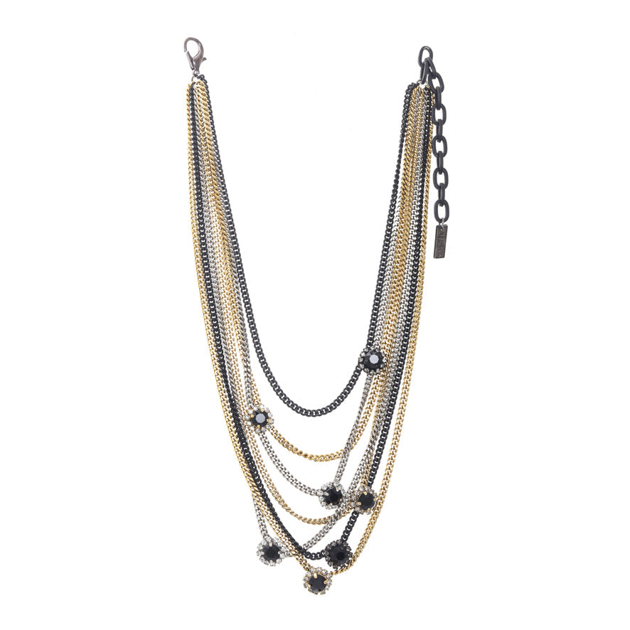 Be a total fan of the Neck Mess! This funky necklace features a variety of metals and materials, like antique silver and gold, plated brass, and high-quality crystals. You can choose the perfect length with it's 16-20" chain plus 2" extension, all made in Canada so you know it's good stuff! Time to up your necklace game!