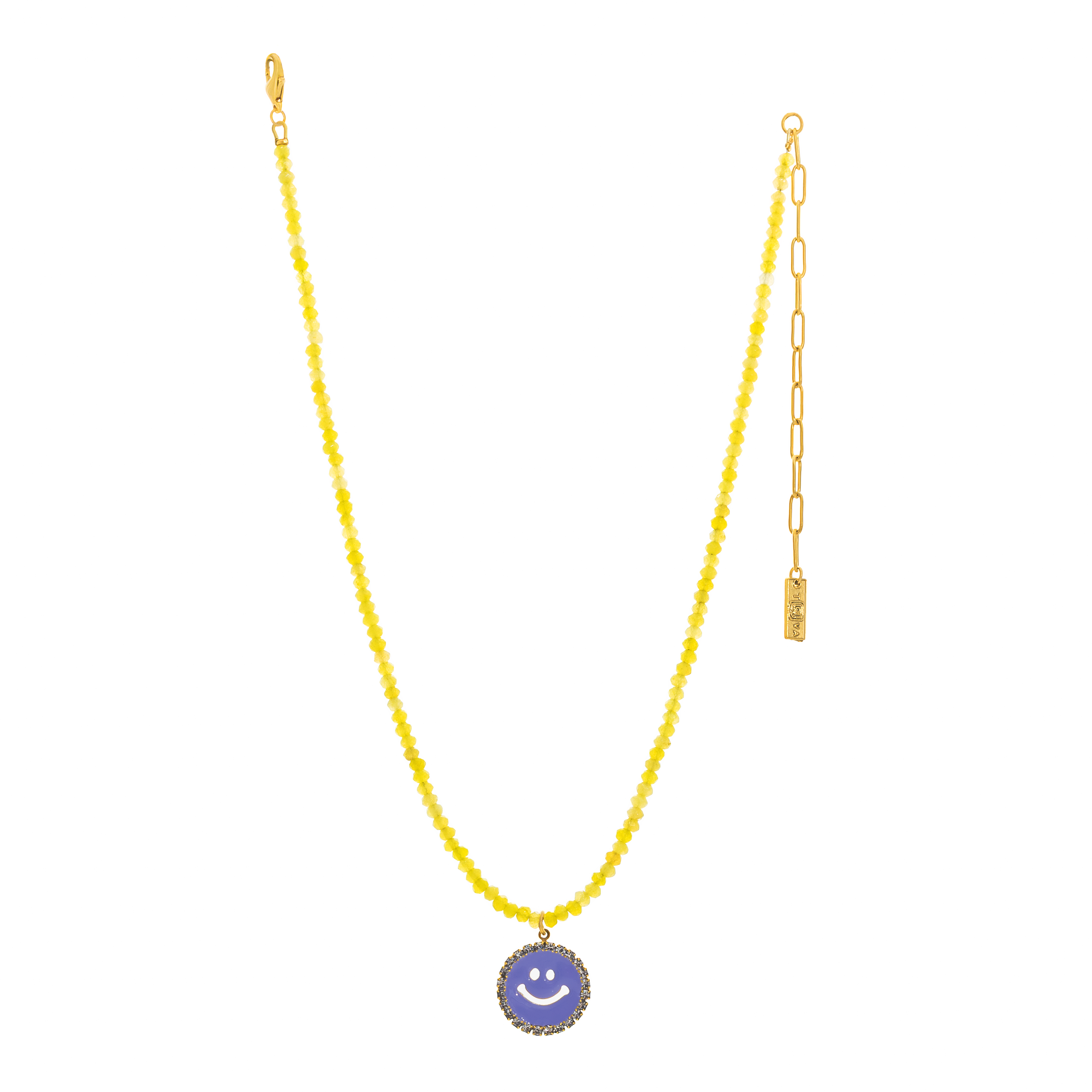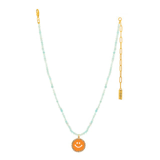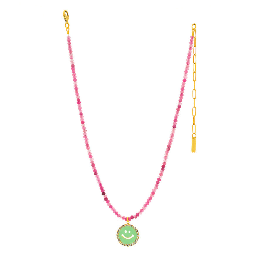 Show everyone your sunshiney attitude with the Be Happy Necklace in Candy Crush! Crafted with beautiful beads, high quality crystals, hand painted enamel, and a brass base, it'll have you feeling like the incredible human you are. And with an 16" chain (plus 4.5" extension) it'll be hard not to smile. Oh, happy day!