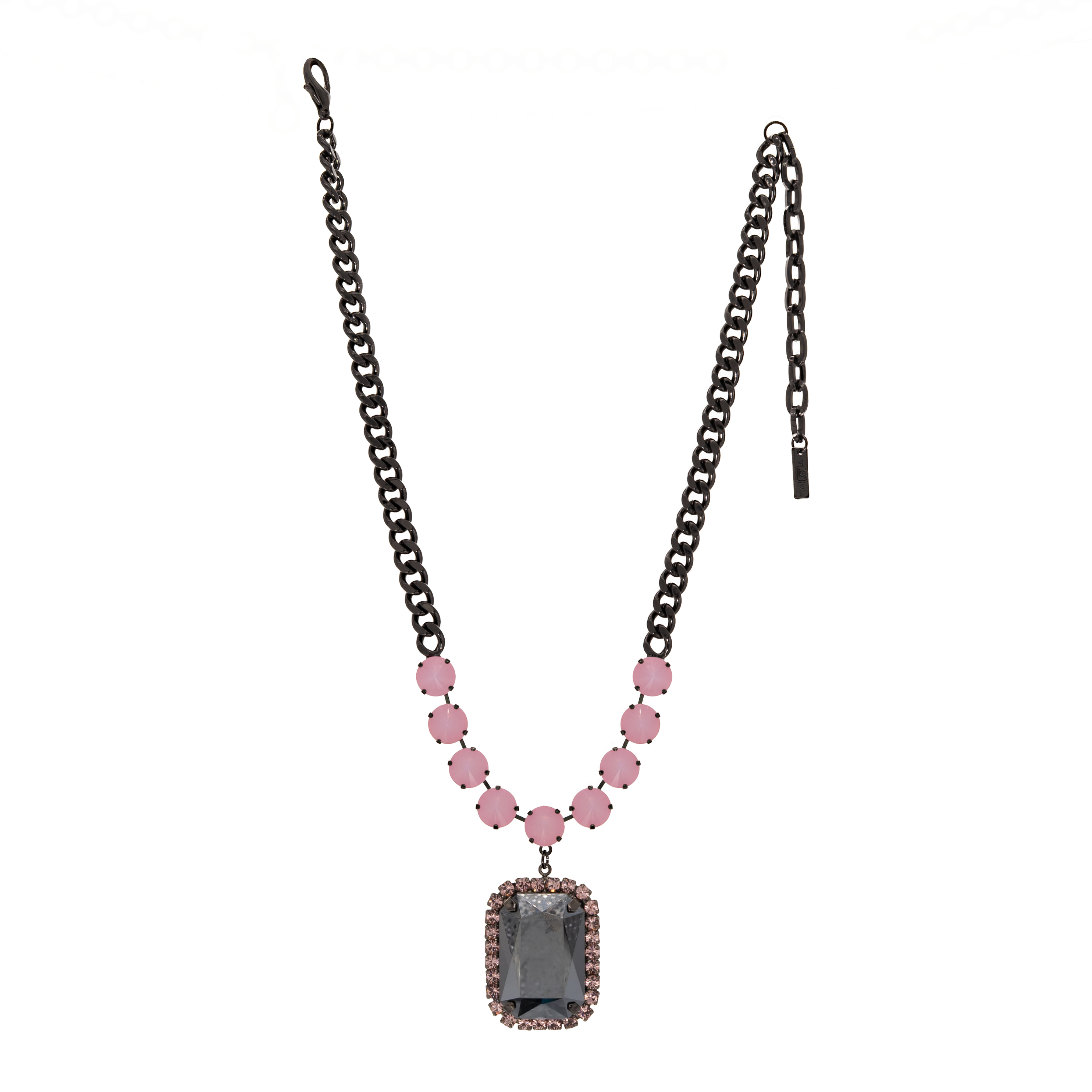 Add a touch of sparkle with Sonny, a playful necklace featuring a gunmetal-plated brass base and high-quality crystal accents. Measuring 18" long with a 2" pendant and a 4" extension, it’s perfect for layering or wearing solo to brighten any outfit.