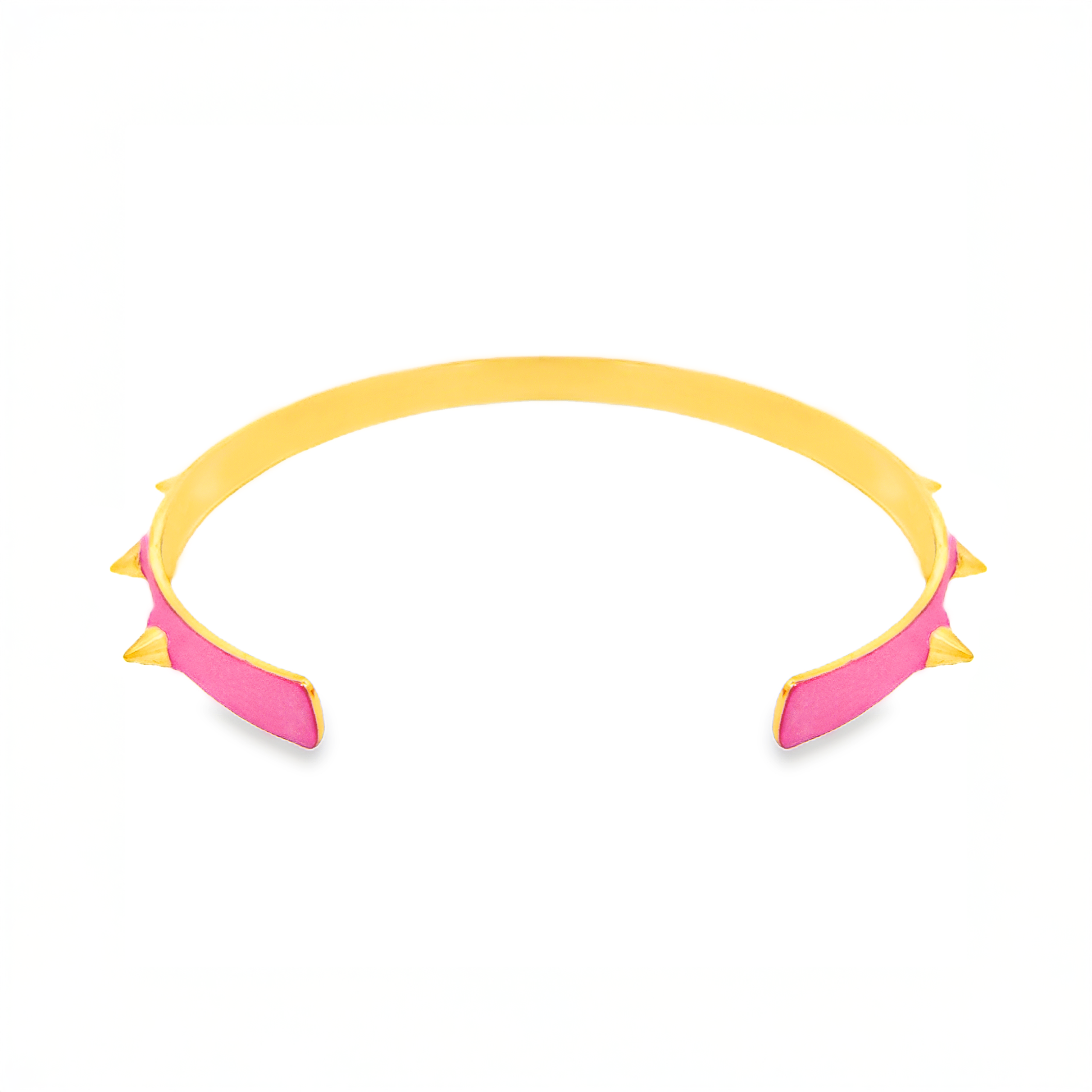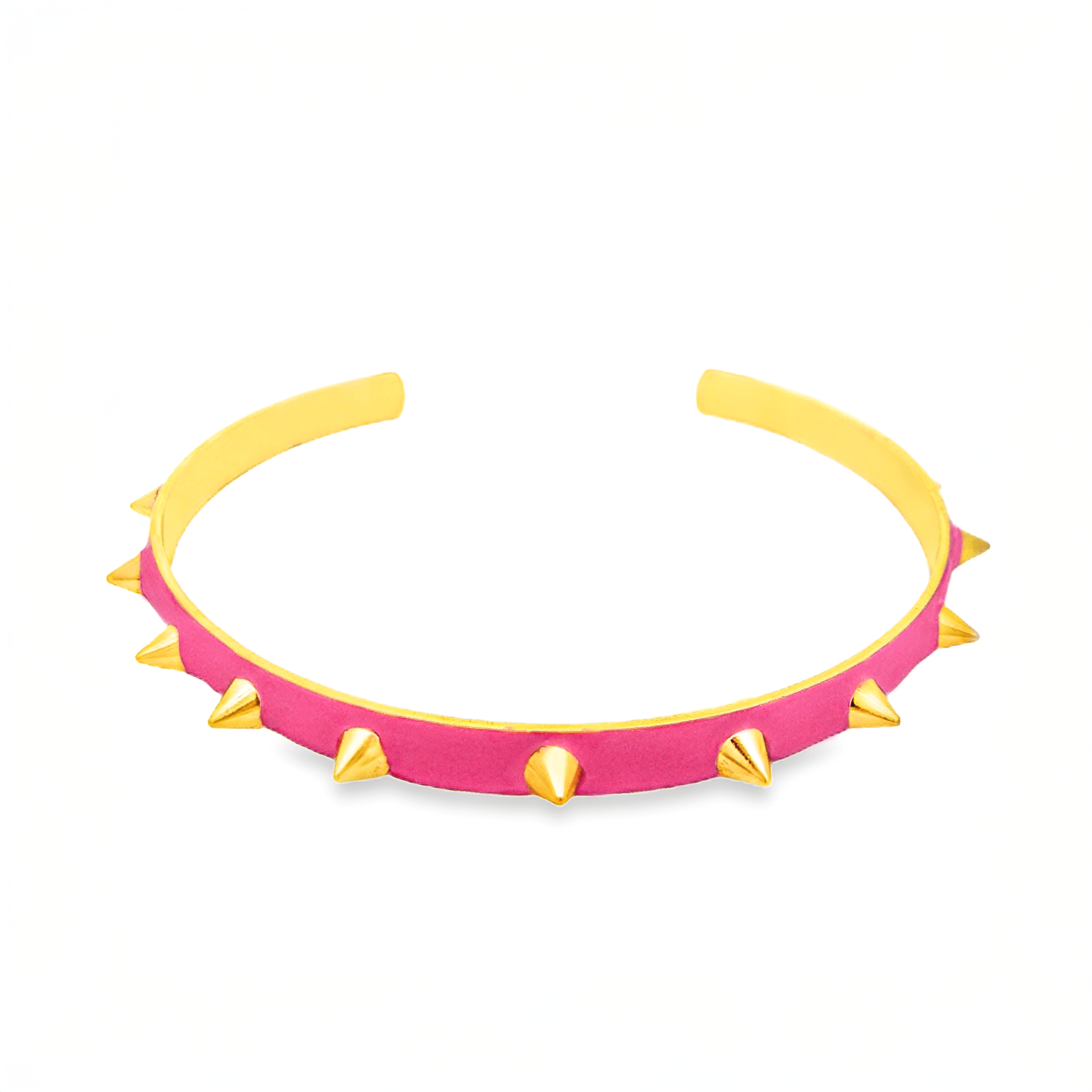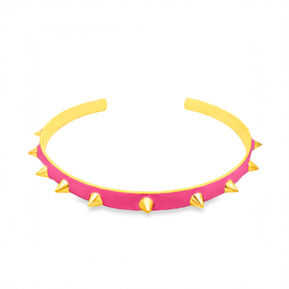 Rock the Ziva Collar in Pink and show off your edgy style! It's sleek and modern style is adjustable, hand-painted enamel and adorned with pops of color. Handmade in Canada, it guarantees both quality and style - so slip it on and make a lasting impression!